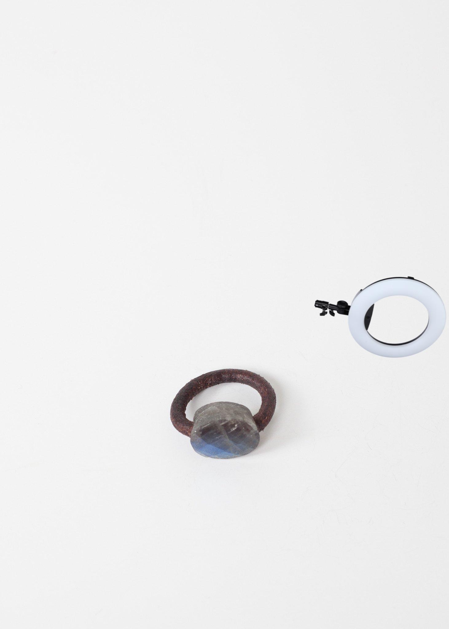 Kalosoma Jewelry demonstrates the rigorous beauty in the handmade. Labradorite galactic coloring changes in light from blues to teal grey. Leather band. Color Grey. Made in Mexico.