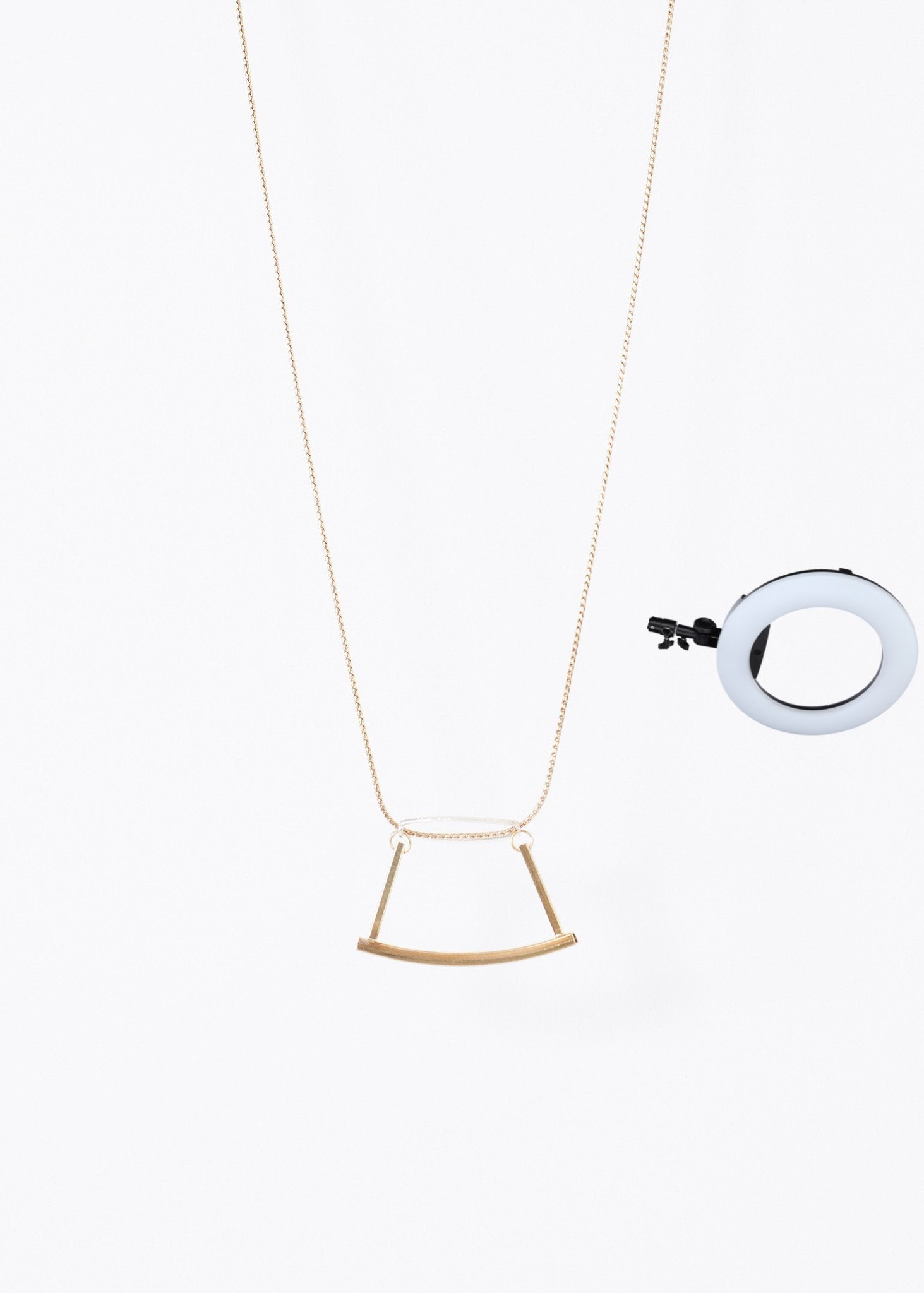 "Spacious beauty," a concept well depicted throughout new designer Sayaka Davis' collection. With empty space as the emphasis, the garment themselves become the subject. The 2015 line embodies Sayaka's artistic vision with effortless composure to every piece. The Miya is sensational in its pendant design and use of metal. Color Gold. Made of Plated Metal. Made in U.S.A.