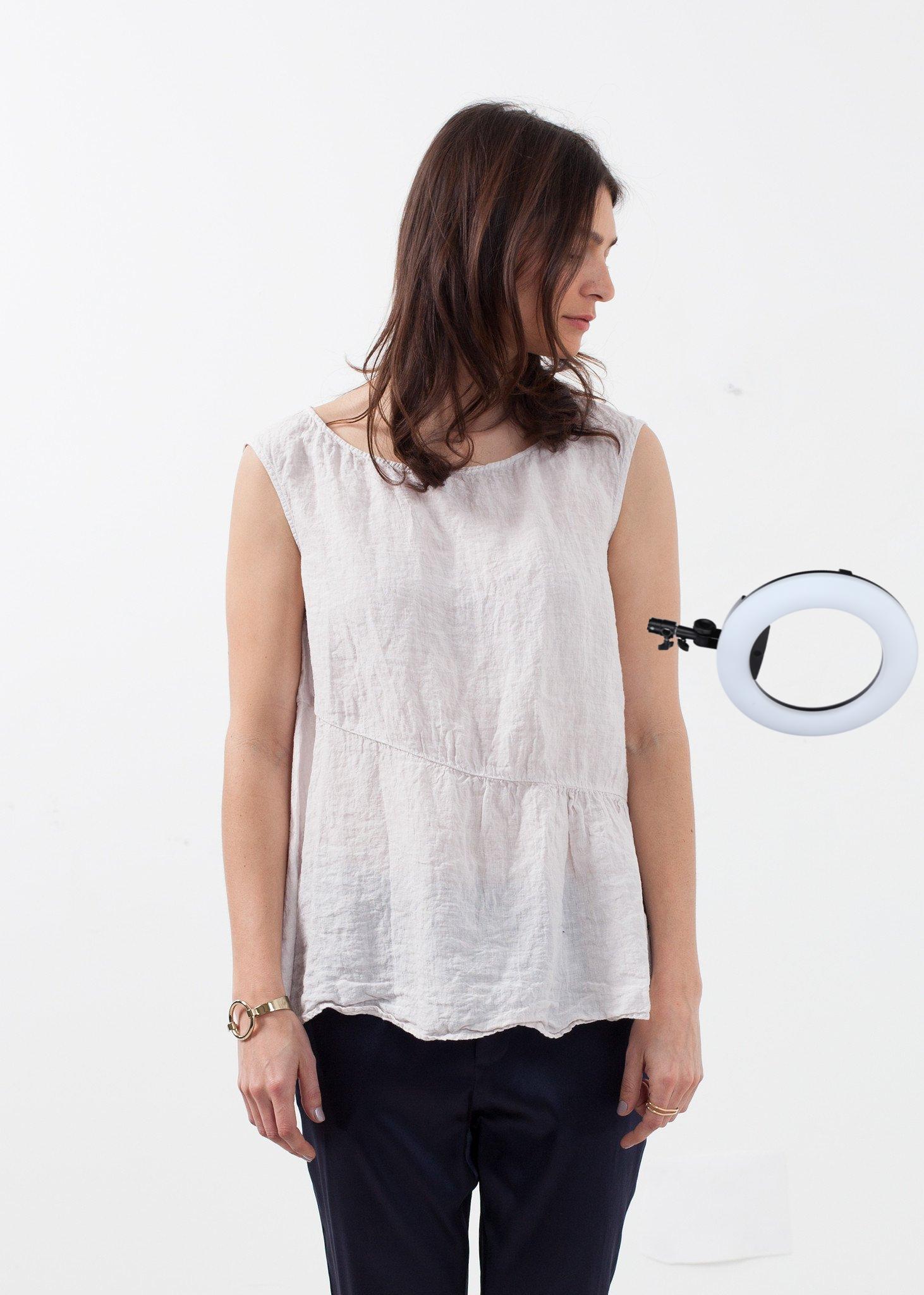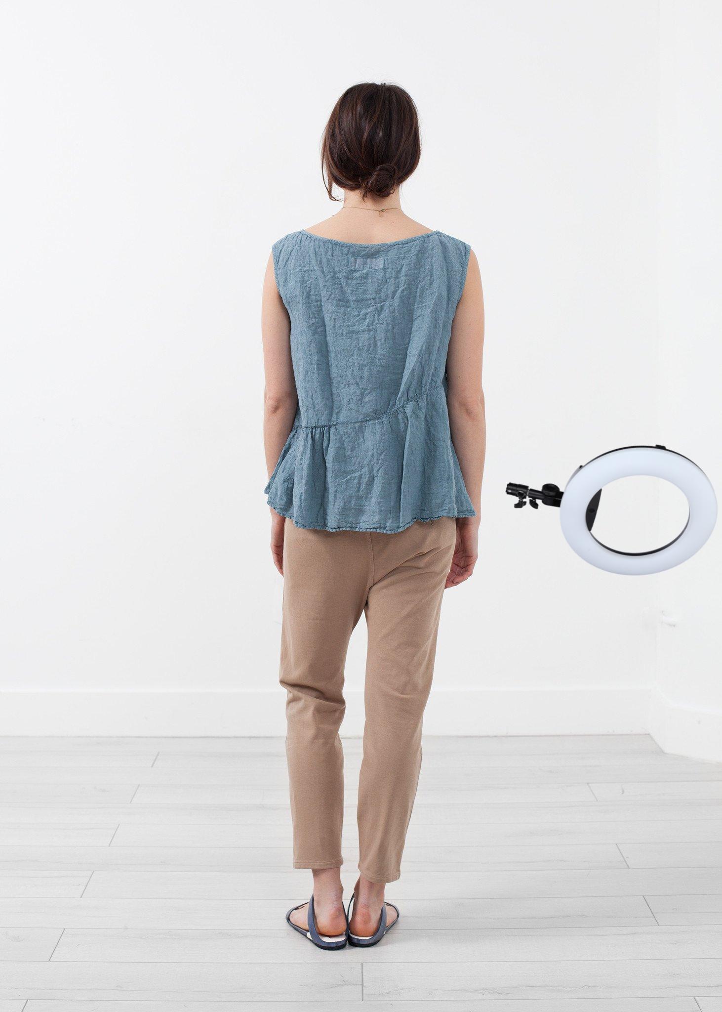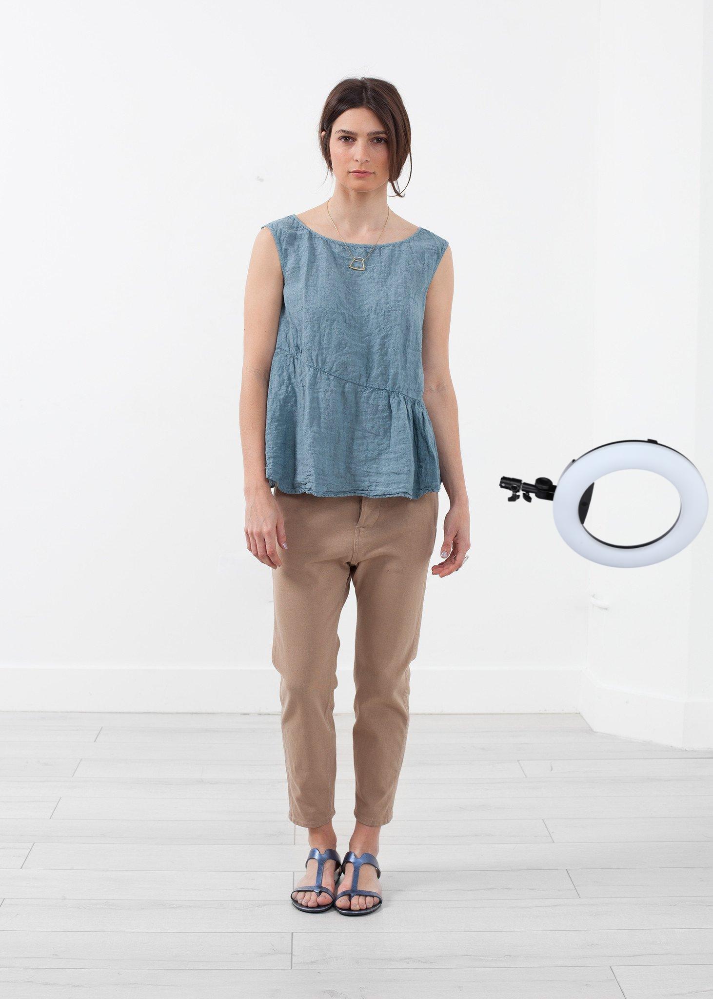 Manuelle Guibal's 2015 Summer collection embodies beach chic with intentional wrinkling and softened linen. The Eri Dress offers an oversized and comfortable silhouette. Wide, boat neckline. 100% Linen. Made in France. Lana is wearing a Size 1.