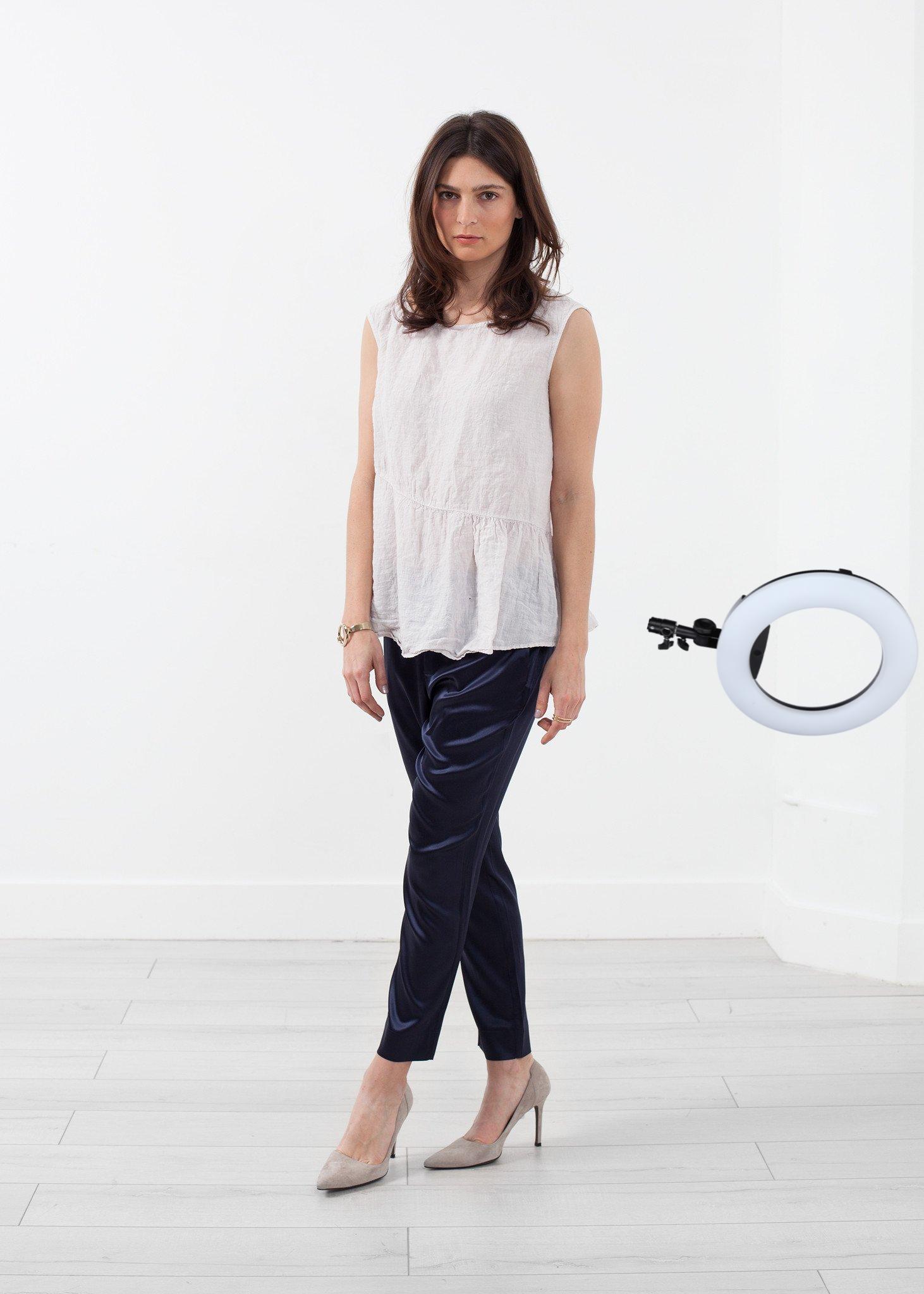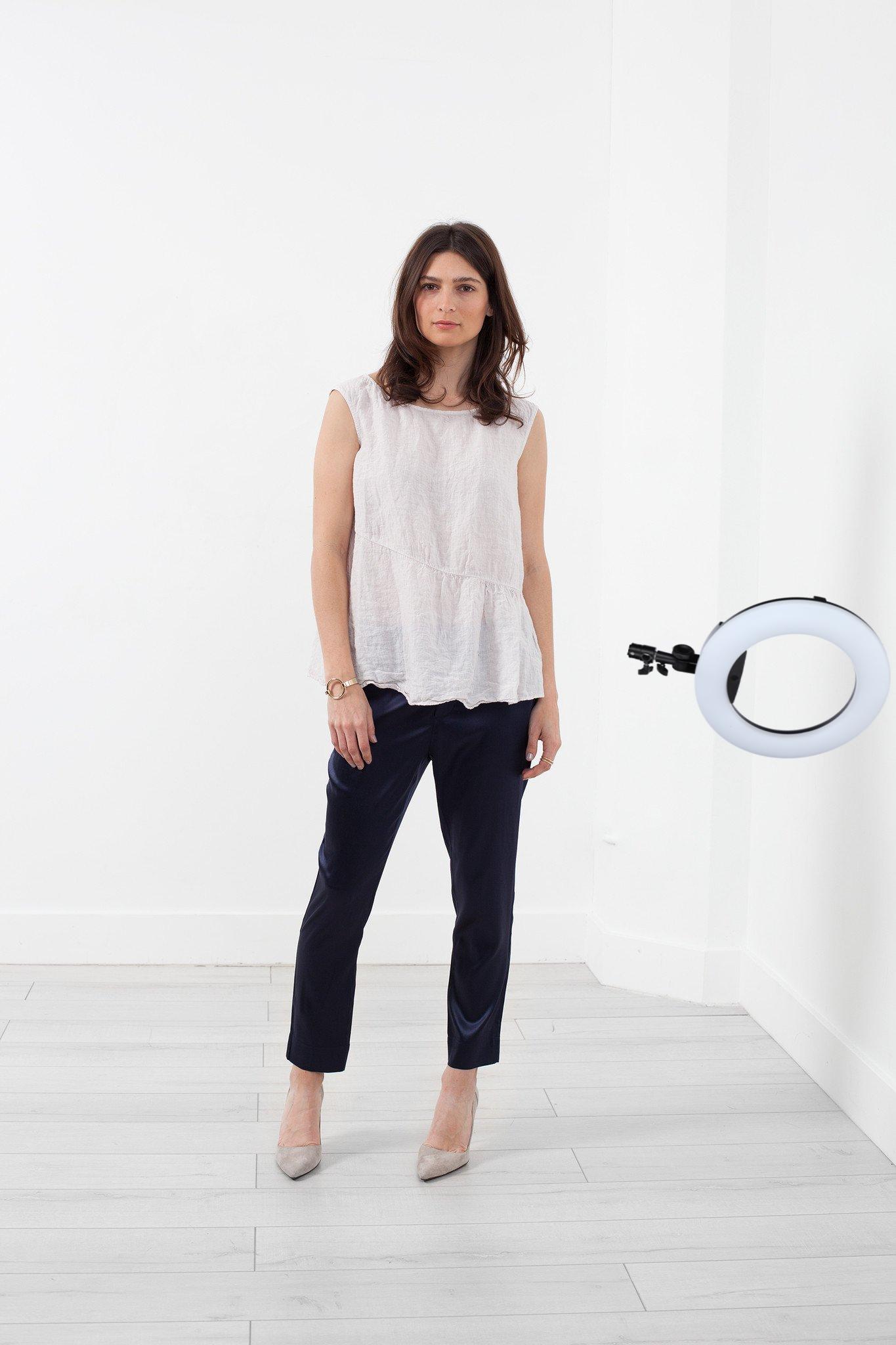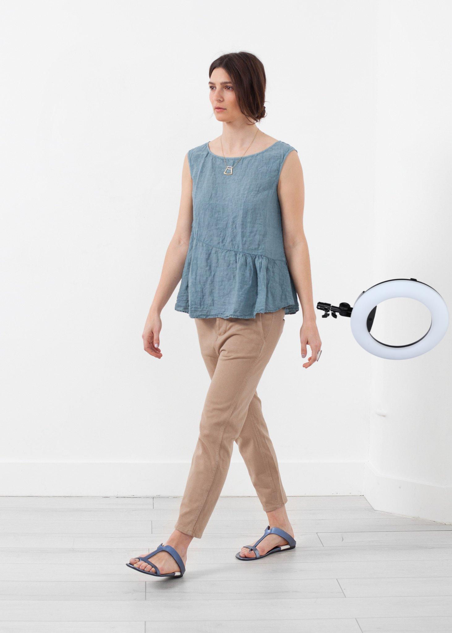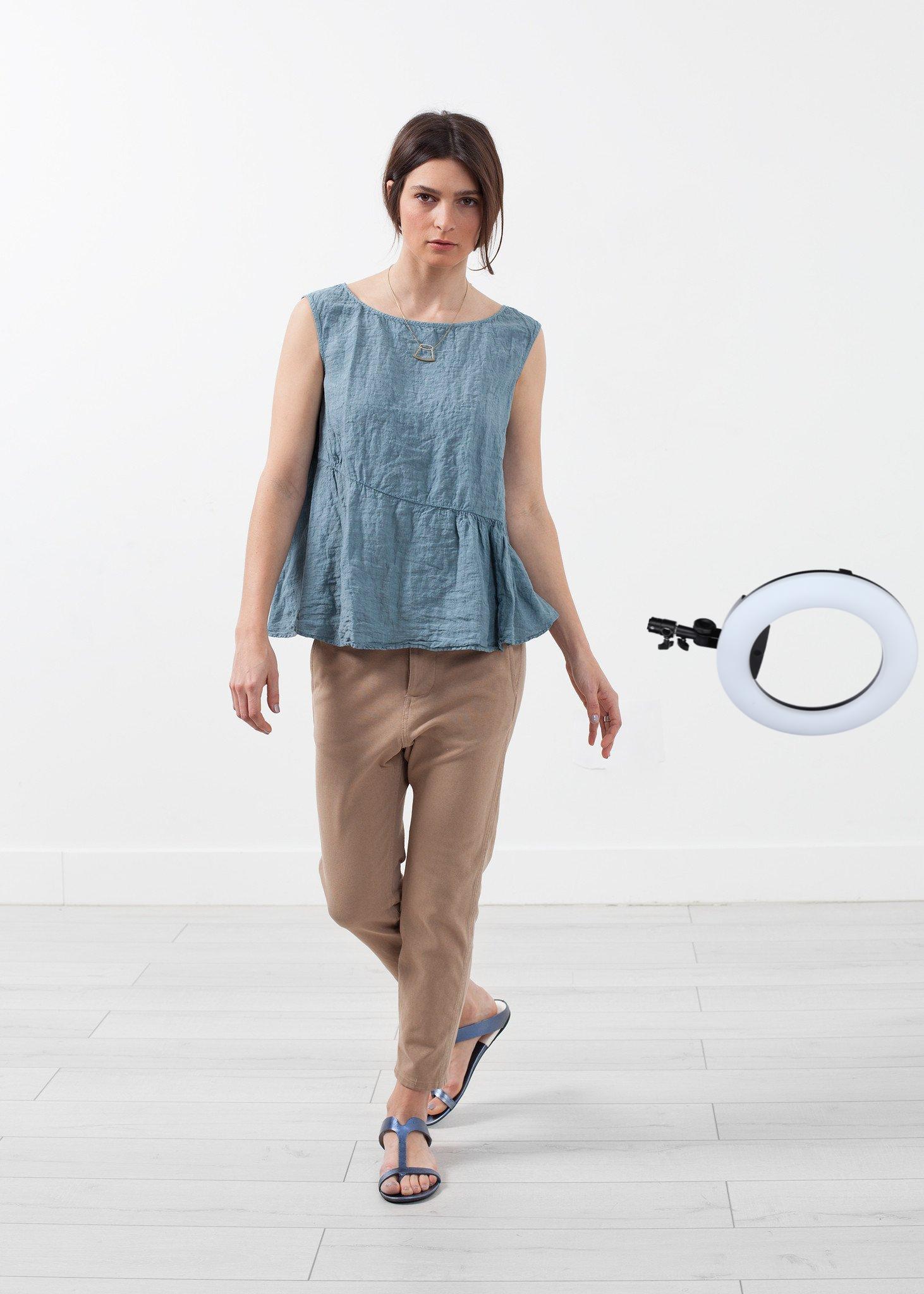 Manuelle Guibal's 2015 Summer collection embodies beach chic with intentional wrinkling and softened linen. The Eri Dress offers an oversized and comfortable silhouette. Wide, boat neckline. 100% Linen. Made in France. Lana is wearing a Size 1.