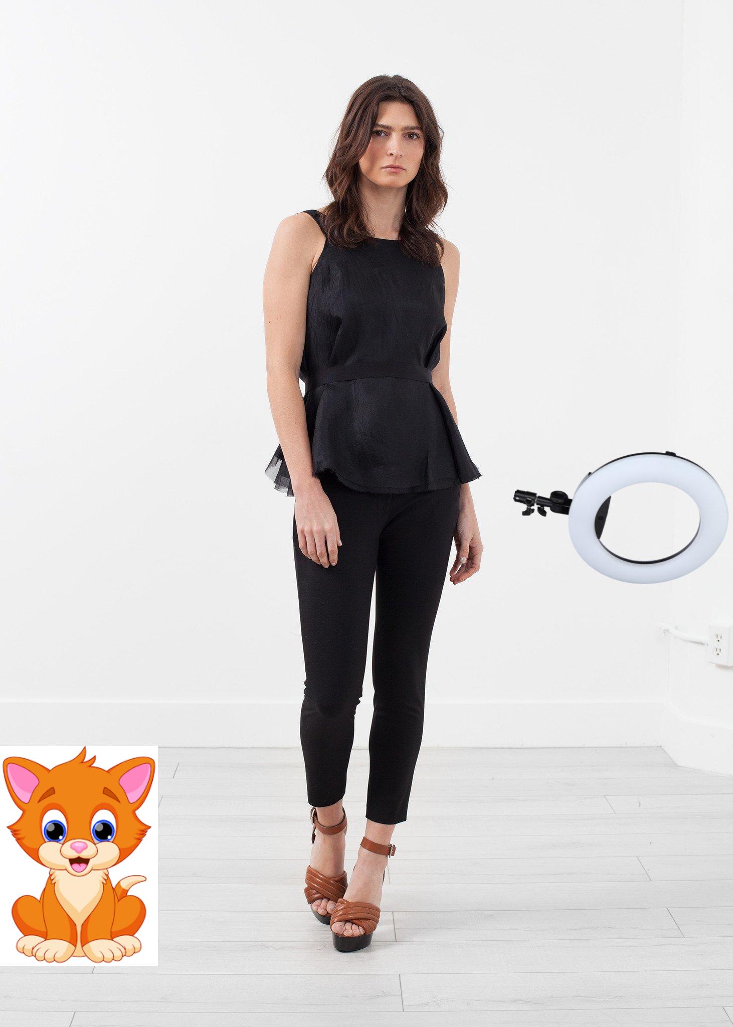 Louiza Babouryan offers a sweet cacophony of artistic vision for her Spring/Summer 2015 line. Dreamy pieces paired with flowing silhouettes invites to indulge on that delicious side. The Organza Swing offers a babydoll silhouette with the potential for variance with ribbon tie. Flowing and soft, this piece evokes dreamy sensations. Low, scoop neckline at back. Lined. Color Black. 100% Silk. Made in U.S.A. Lana is wearing an X-Small.