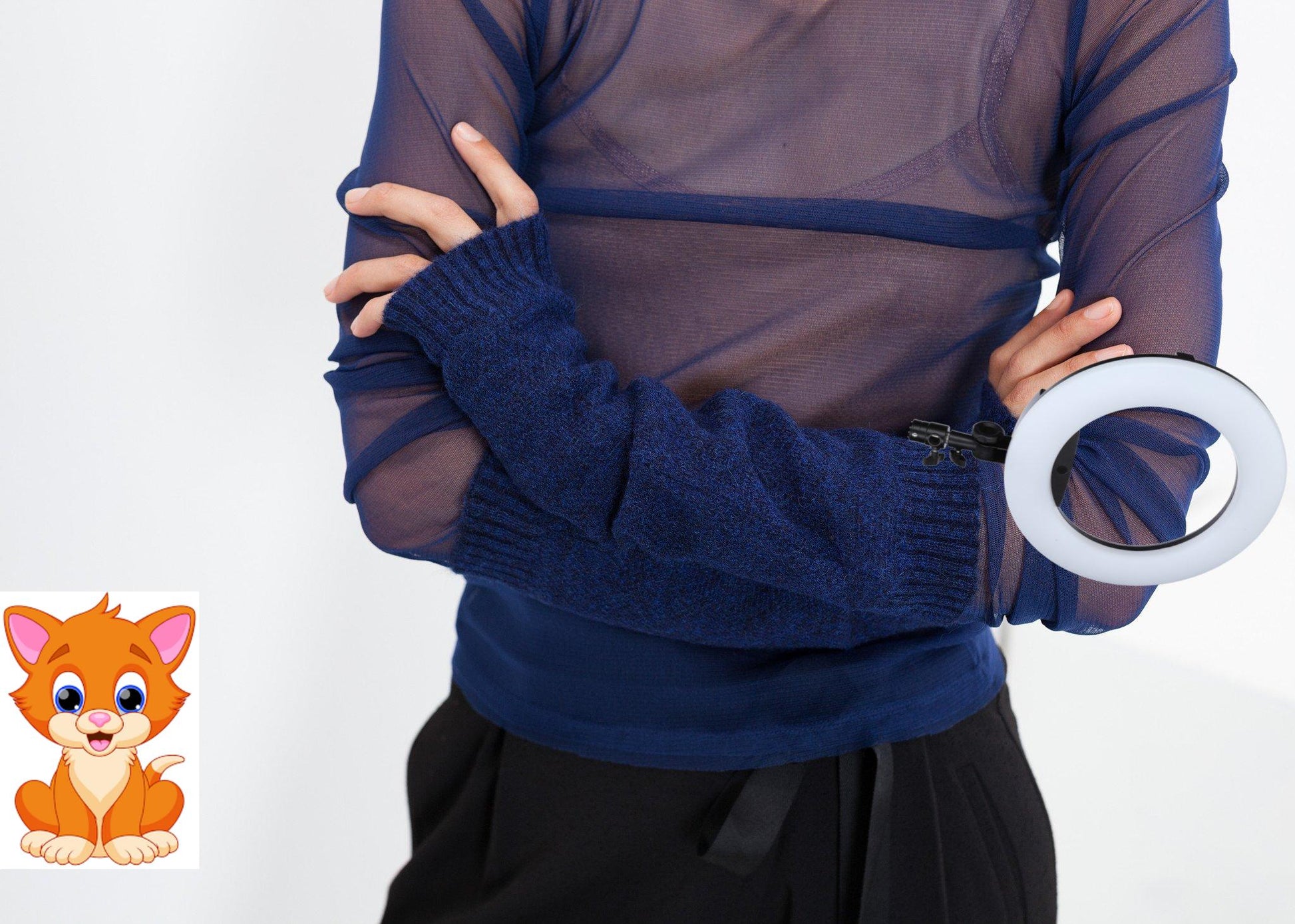 Stay warm while still turning pages in these fingerless mittens with ribbed cuffs and thumbholes. Colors that make sure they aren't lost in the snow. Lilith. Color Blue. 35% Mohair, 35% Alpaca. One Size.
