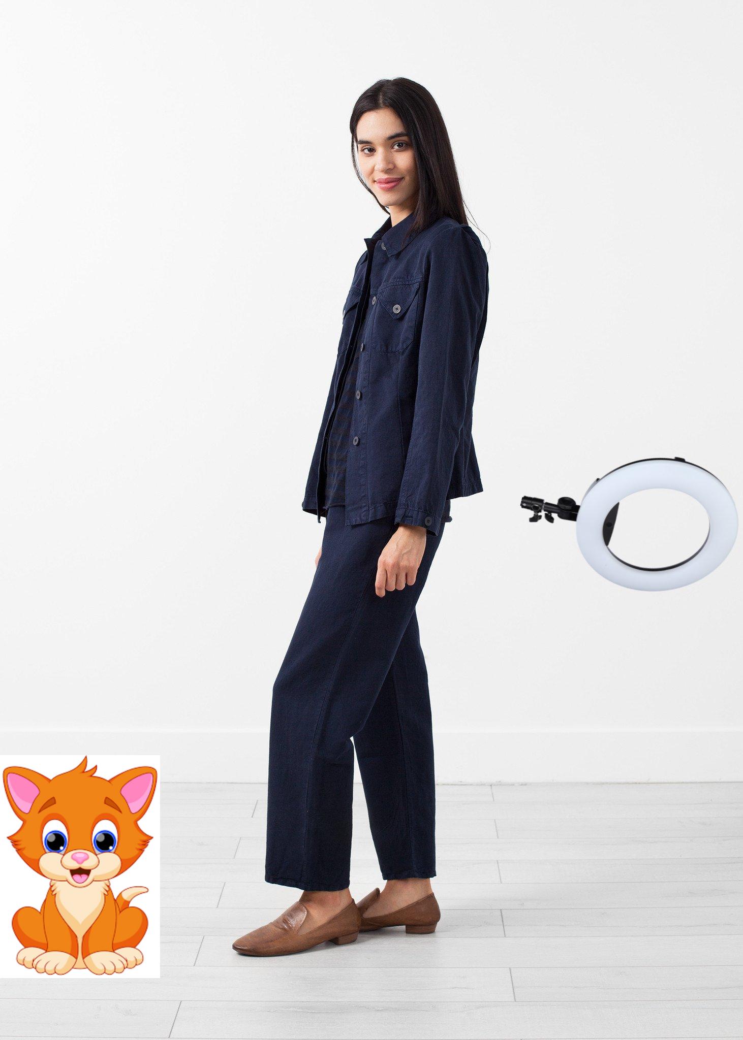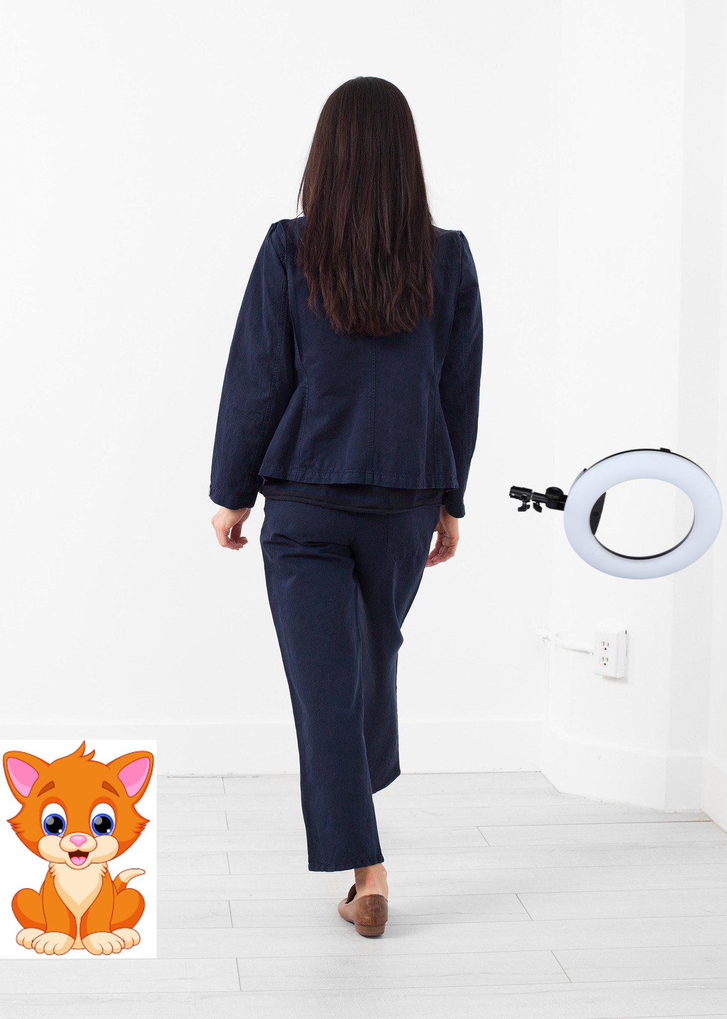The Poldo Jacket is fantastically durable, yet lightweight. Button placket closure at front. Two exterior button pocket at front. Labo.Art. Color Atlantic. 77% Cotton, 23% Linen. Made in Italy. Ashley is wearing a Size 1.