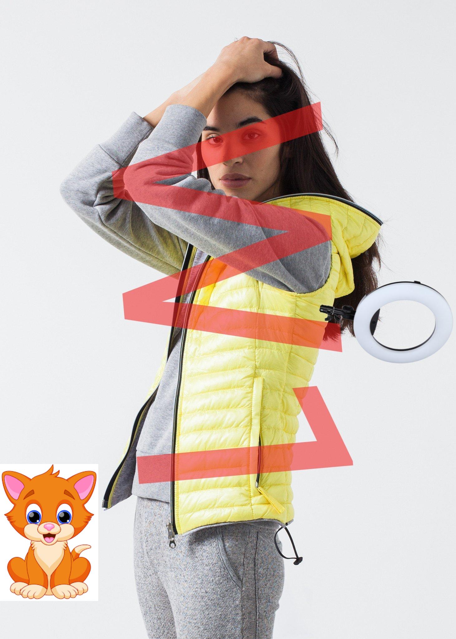 The Primula Vest makes a perfect accessory for spring weather. Sleeveless, adjustable waist drawstring, and various interior and exterior pockets. Front zip closure with hood. Fully lined. Duvetica. Color Yellow. 100% Polyamide, 100% Cotton, Goose New Down. Made in Bulgaria. Ashley is wearing an Italian 40.