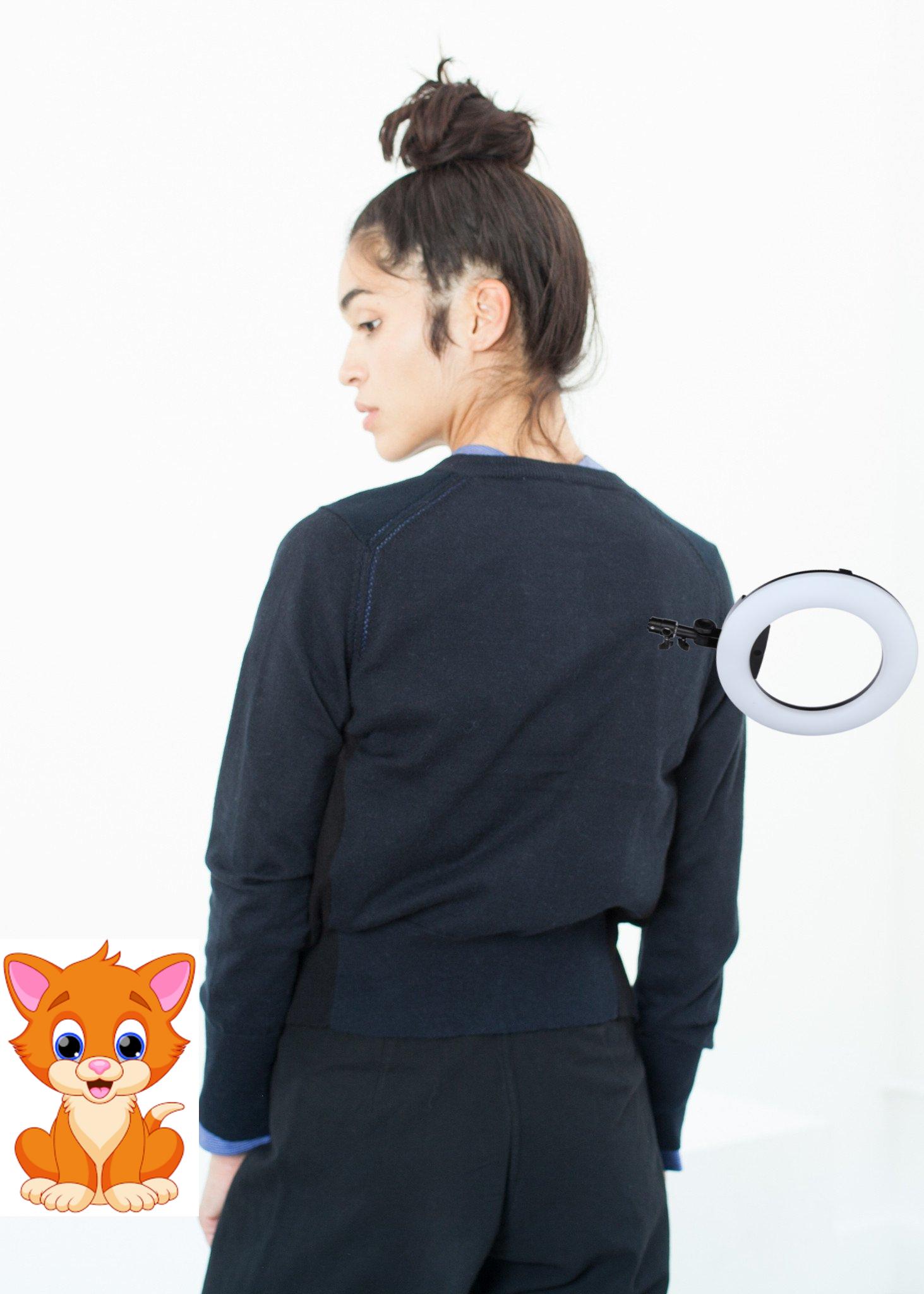 A thin cardigan that packs a punch of warmth thanks to the alpaca and cotton yarns. A harlequin pattern of diamonds in black and navy is made more charming still by the subtle joining stitches along the raglan sleeve. Yoshi Kondo. Color Black/Navy. 85% Cotton, 15% Alpaca. Ashley is wearing a size Small.