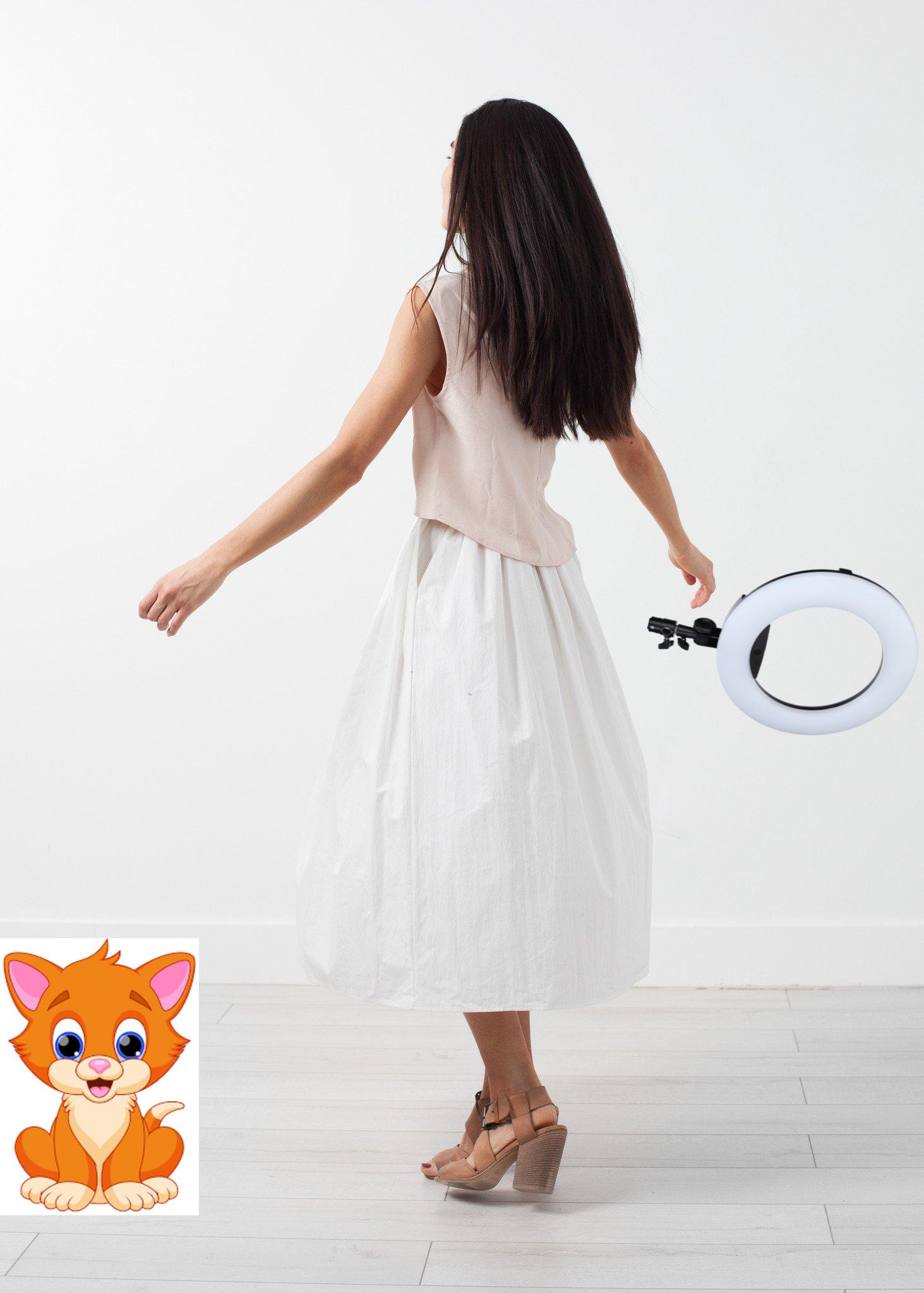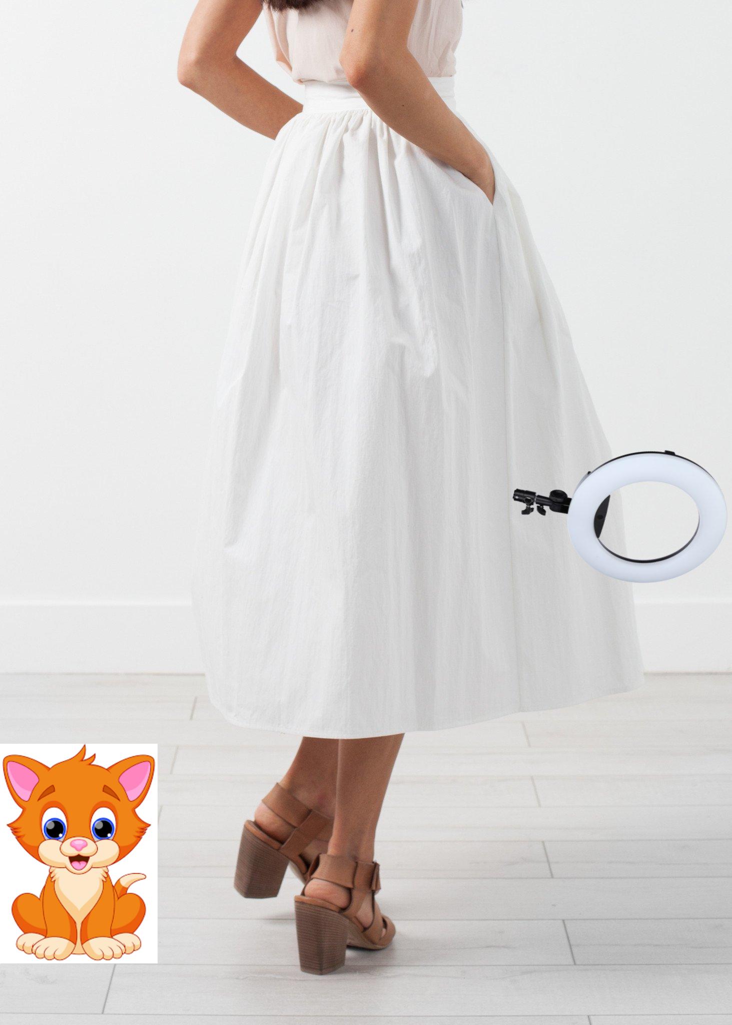 This whimsical piece is a full-length, full skirted beauty. Take her for a spin. Jesse Kamm. Color White. 60% Cotton, 40% Polyester. Made in U.S.A. Ashley is wearing an X-Small.