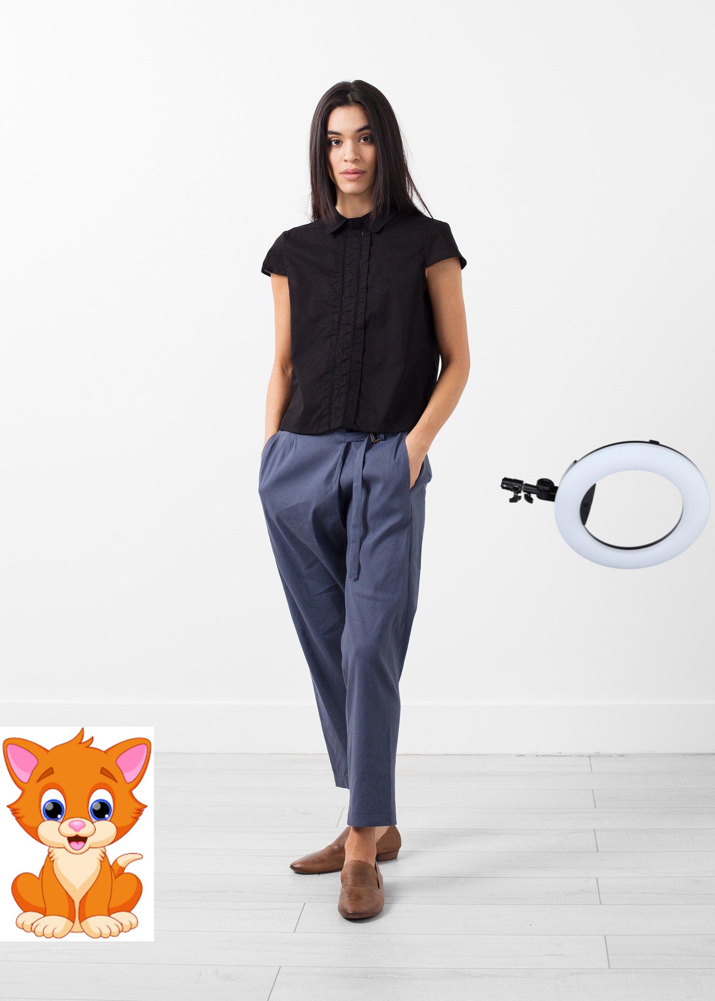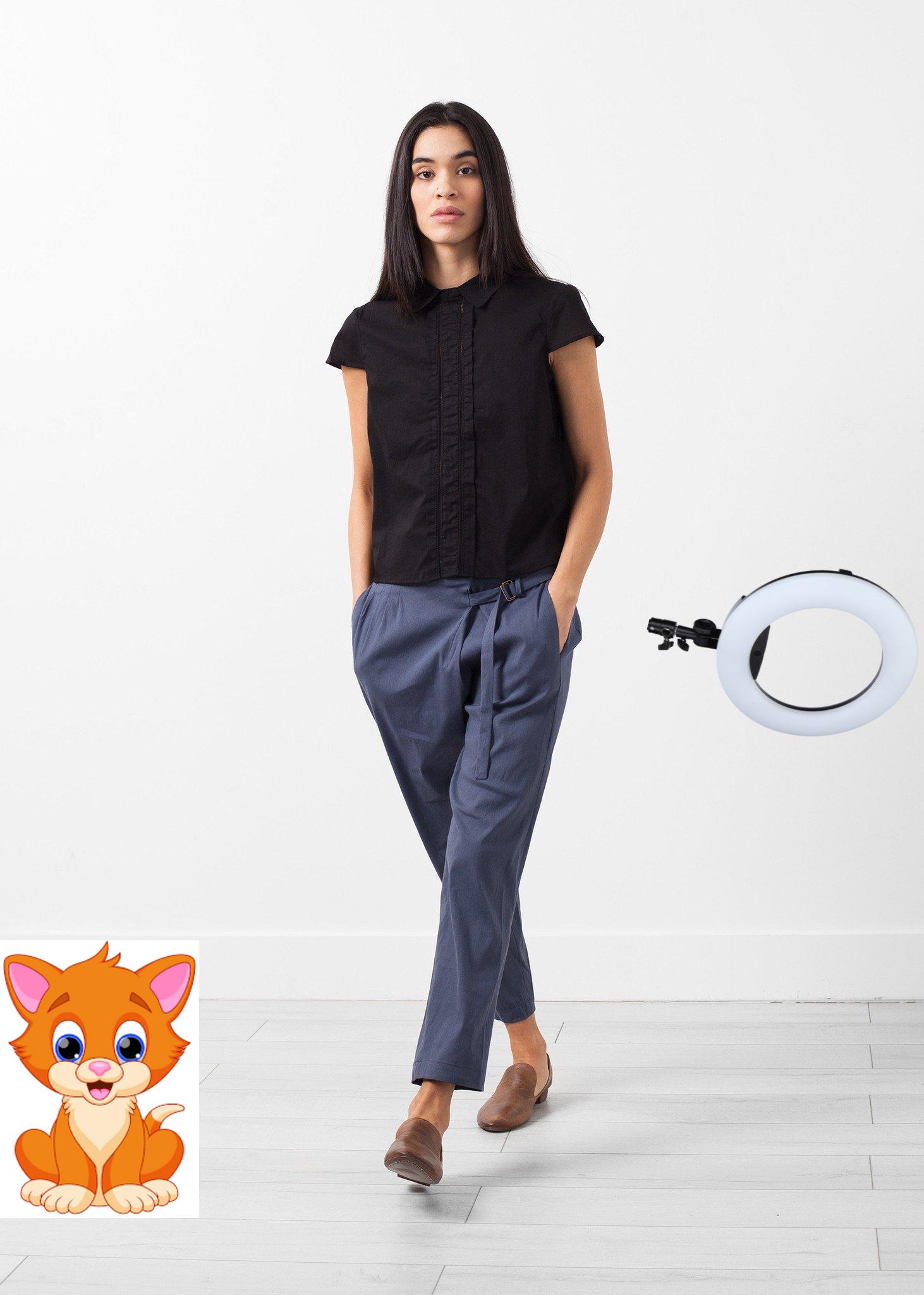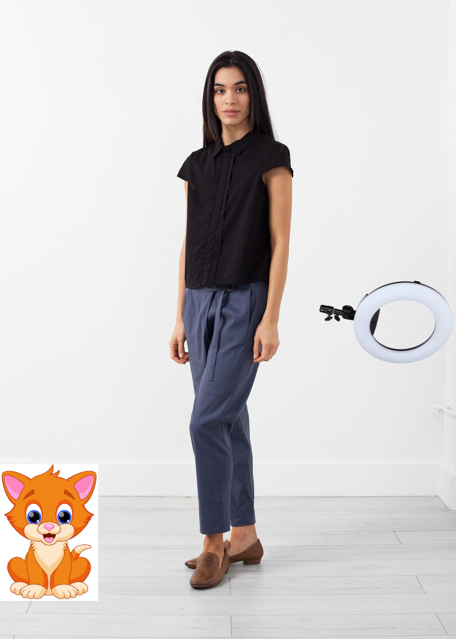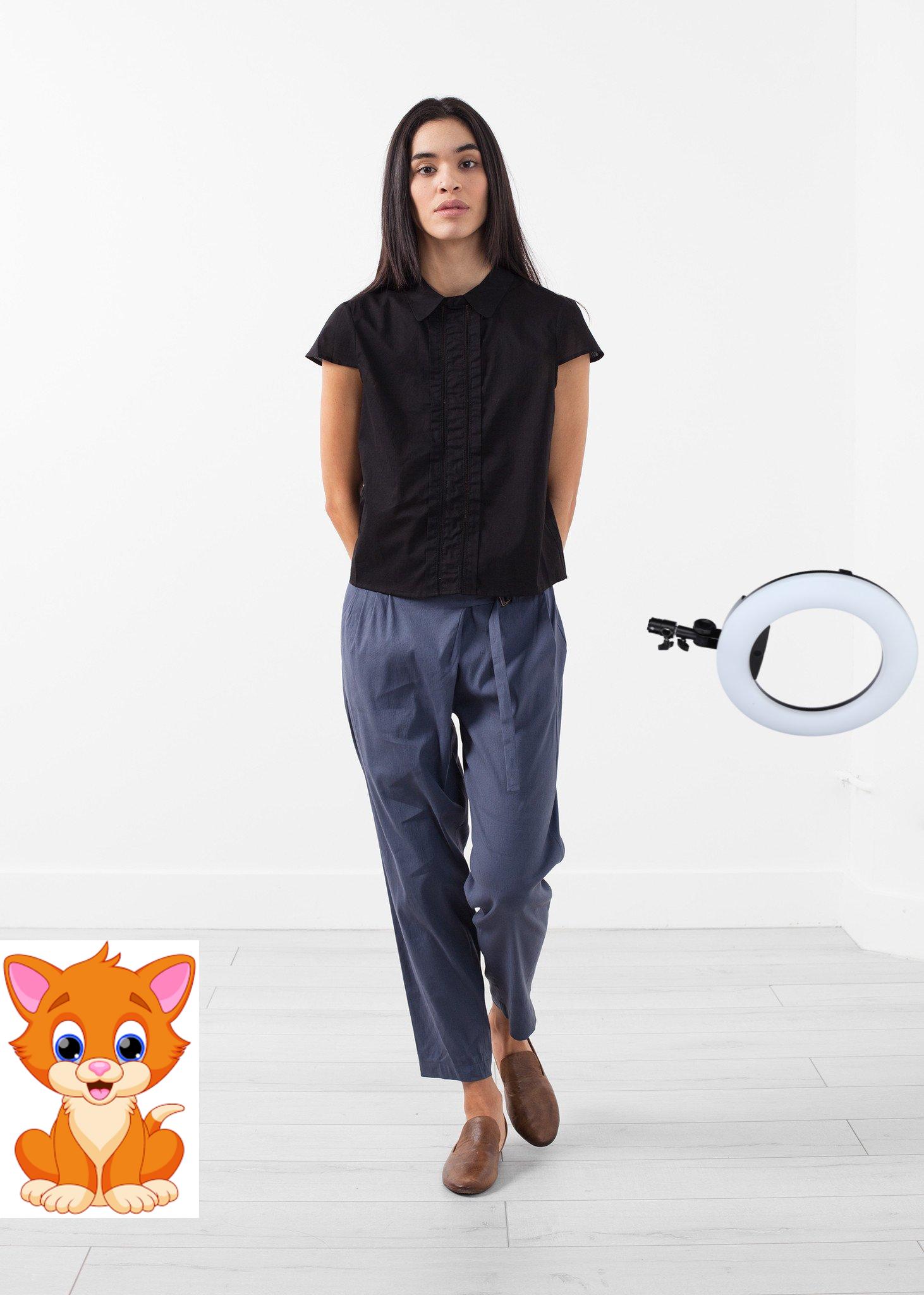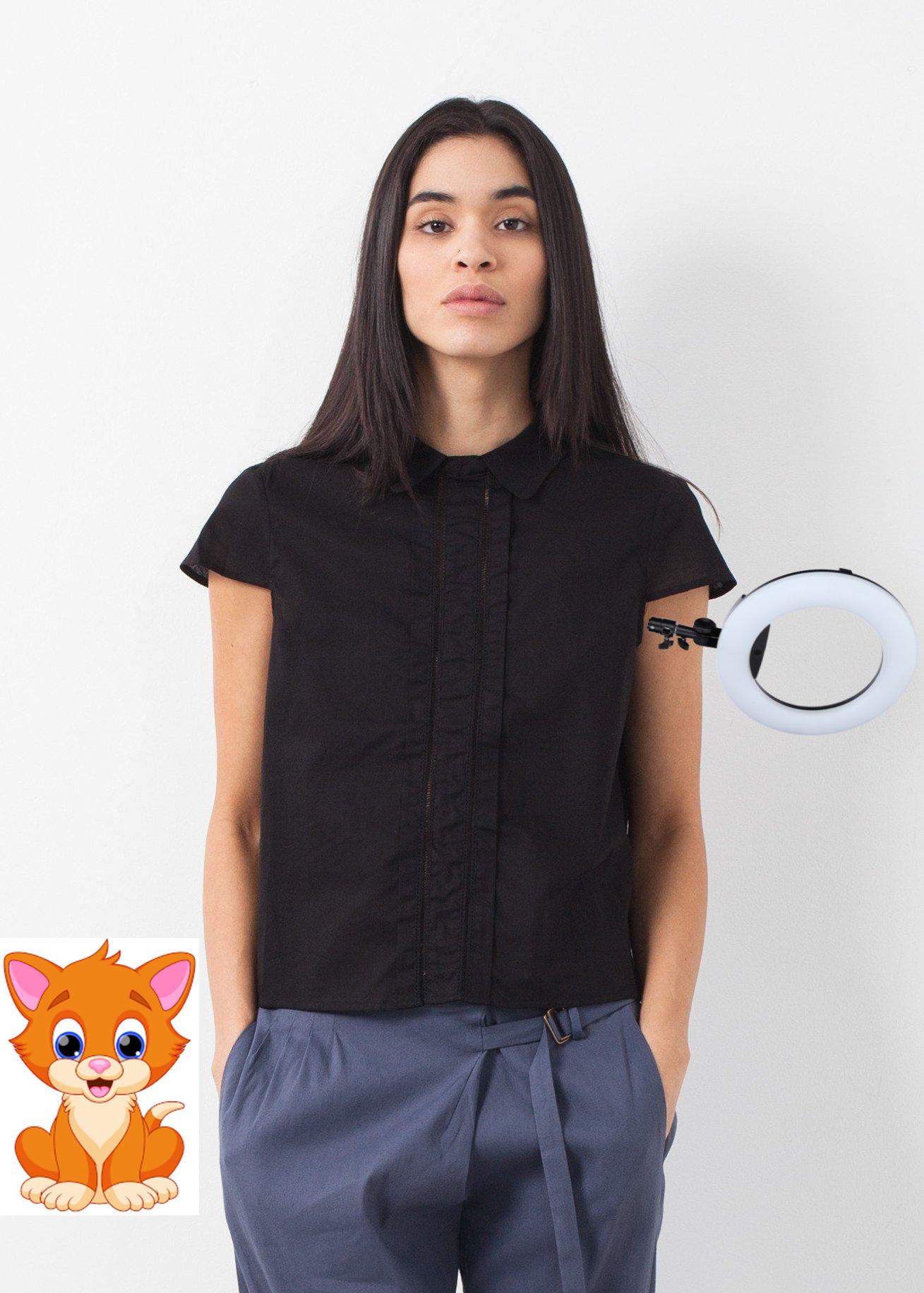 The Rano presents a sweetness to the refined prep. Single button closure at center back neck. Capped sleeves. Lilith. Color Black. 100% Cotton. Ashley is wearing an X-Small.