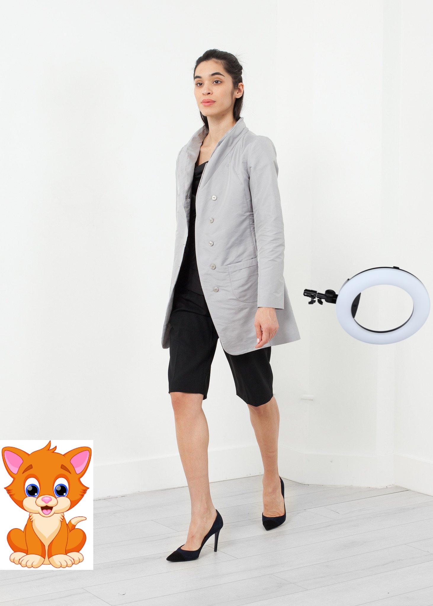 Elegance made playful. The Reasonable Jacket offers uniqueness of texture paired with excellence in tailoring. Single side angled pocket, exterior pocket at front. Button placket closure at front. Double lapel. Lilith. Color Grey. 100% Polyester. Made in Tunisia. Ashley is wearing an X Small.