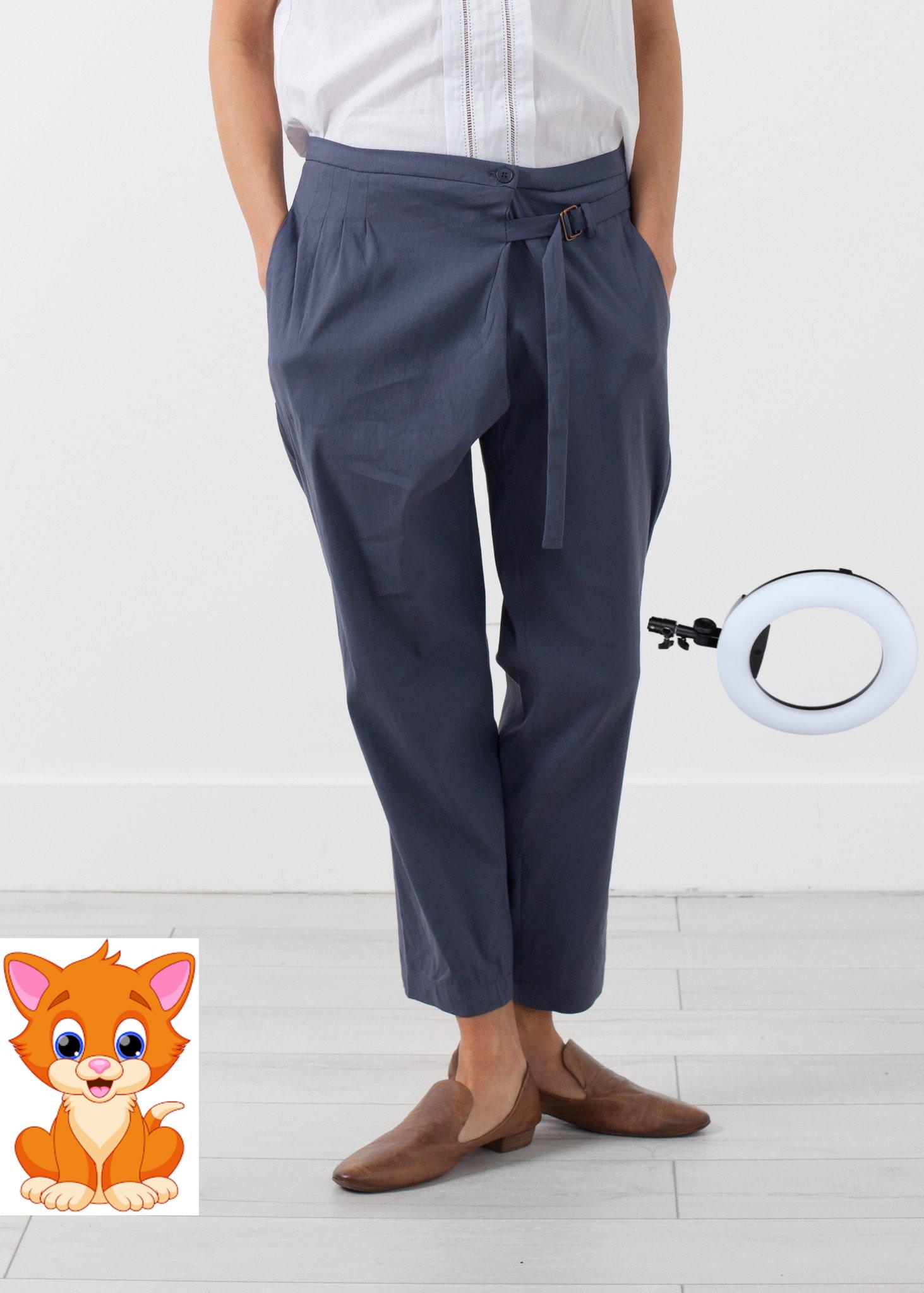 The Renfort acts as the all wear staple pant every closet needs. Oversized to natural fit. Single button closure on front waist with belt tie. Side angled pockets at front, one exterior pocket at back. Lilith. Color Ondee. 65% Linen, 31% Polyamide, 4% Elastane. Ashley is wearing an X-Small.