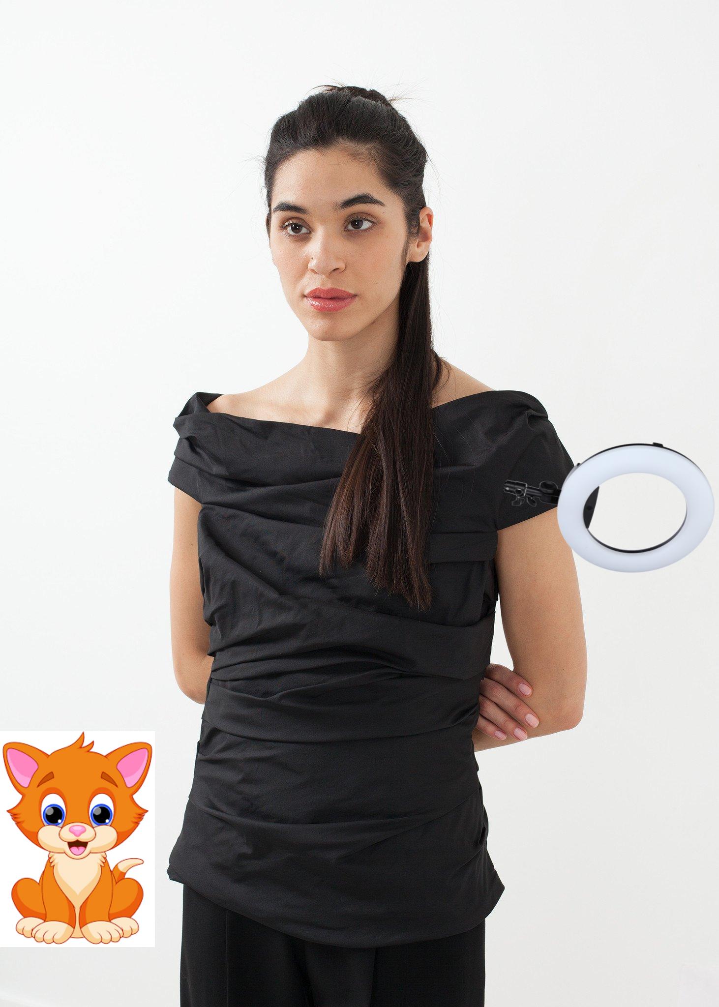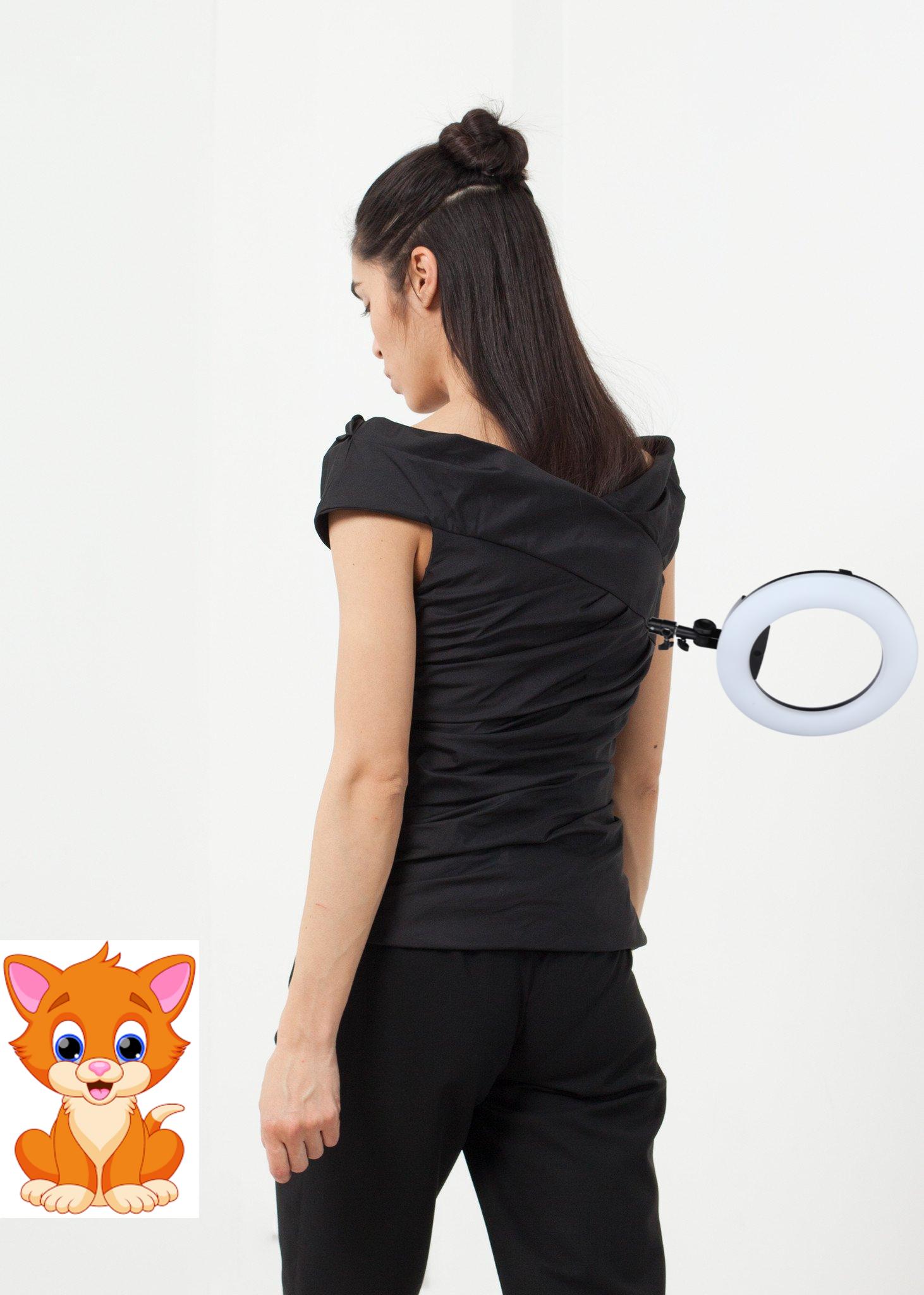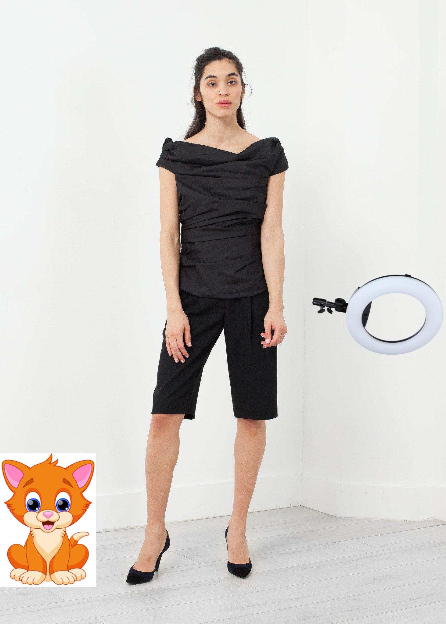 The Riot Top is a romantic piece of gathering and placement. Invisible zip closure at side. Lilith. Color Black. 100% Polyester. Made in Tunisia. Ashley is wearing an X Small.