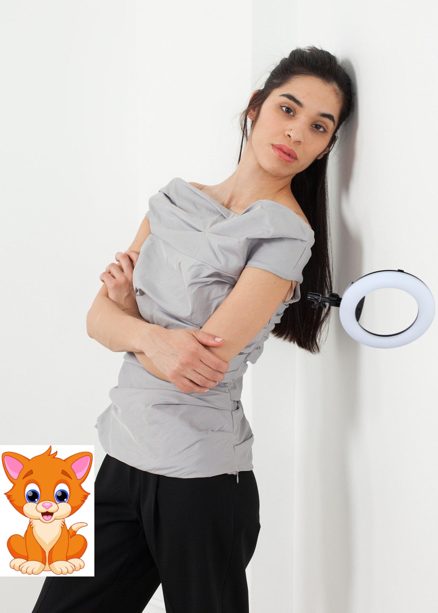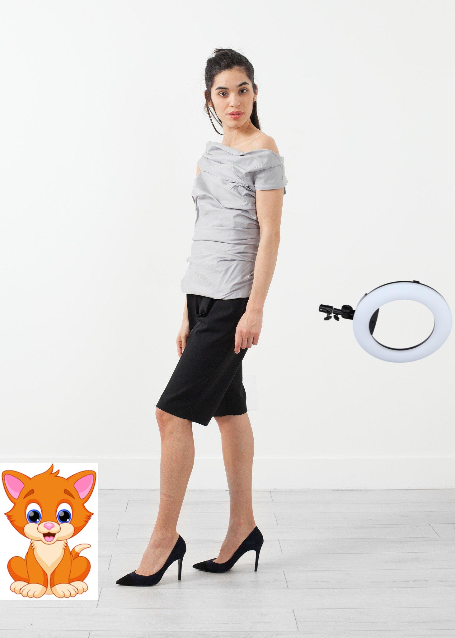 The Riot Top is a romantic piece of gathering and placement. Invisible zip closure at side. Lilith. Color Grey. 100% Polyester. Made in Tunisia. AShley is wearing an X Small.
