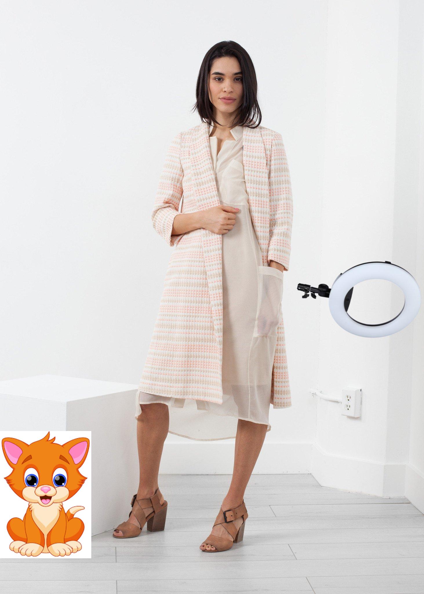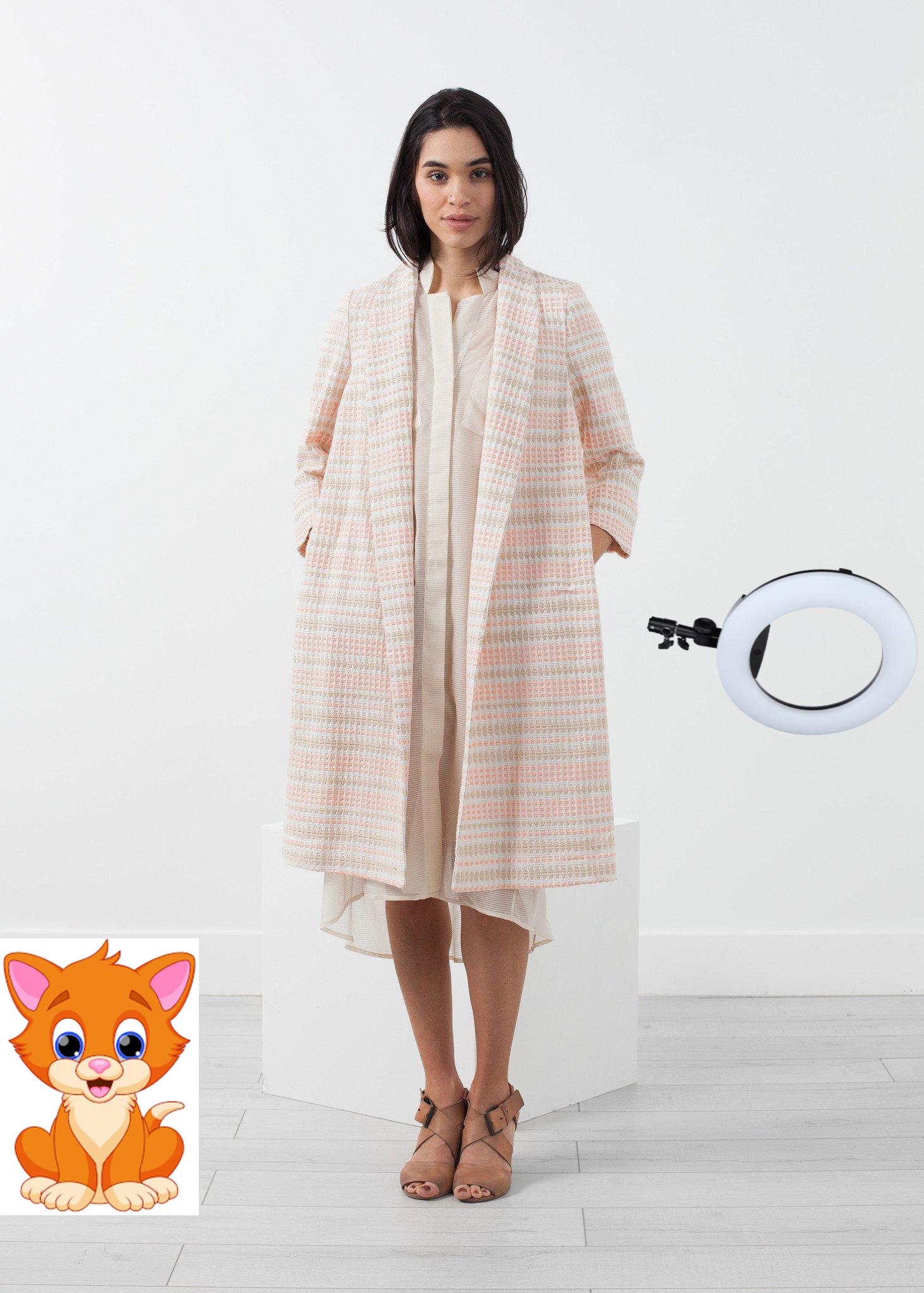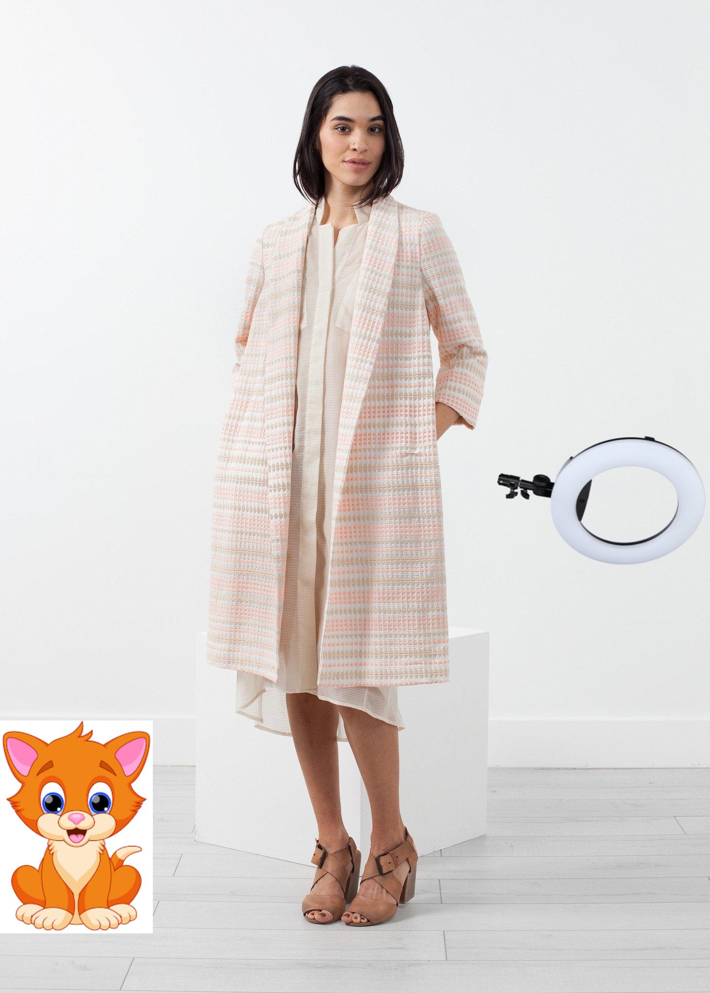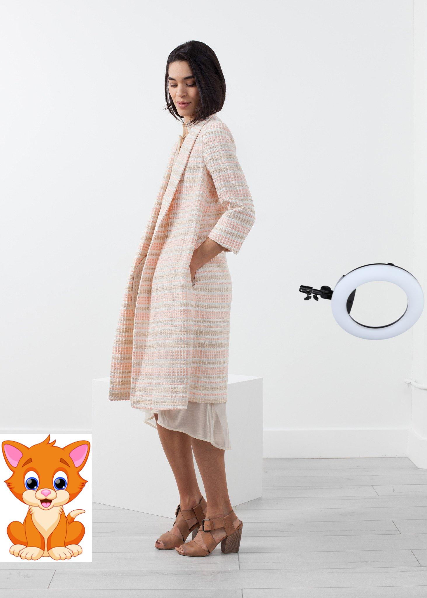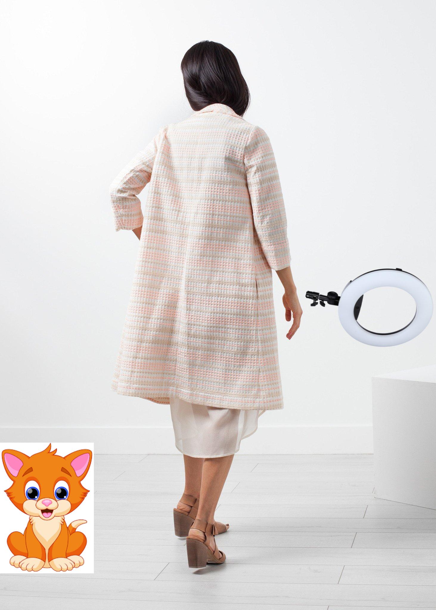 Pretty in peach, the Roulette Jacket is texturally pleasing with subtle sweetness. Side angled pockets at front. Lilith. Color Peach. 81% Cotton, 19% Acrylic Made in Tunisia. Ashley is wearing an X Small.
