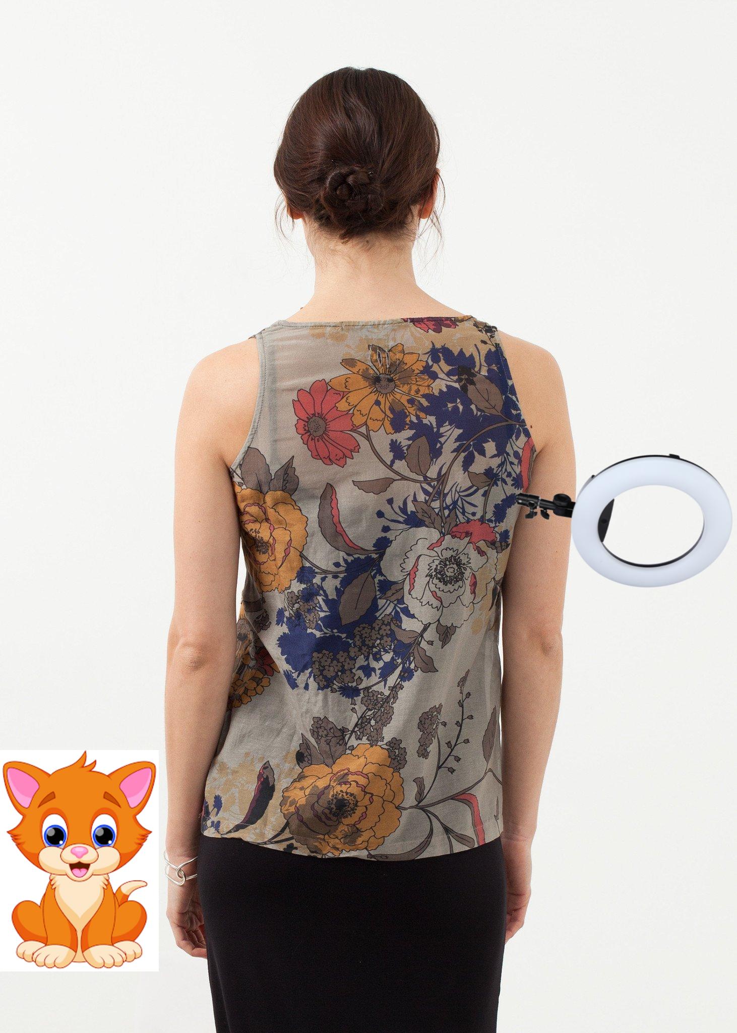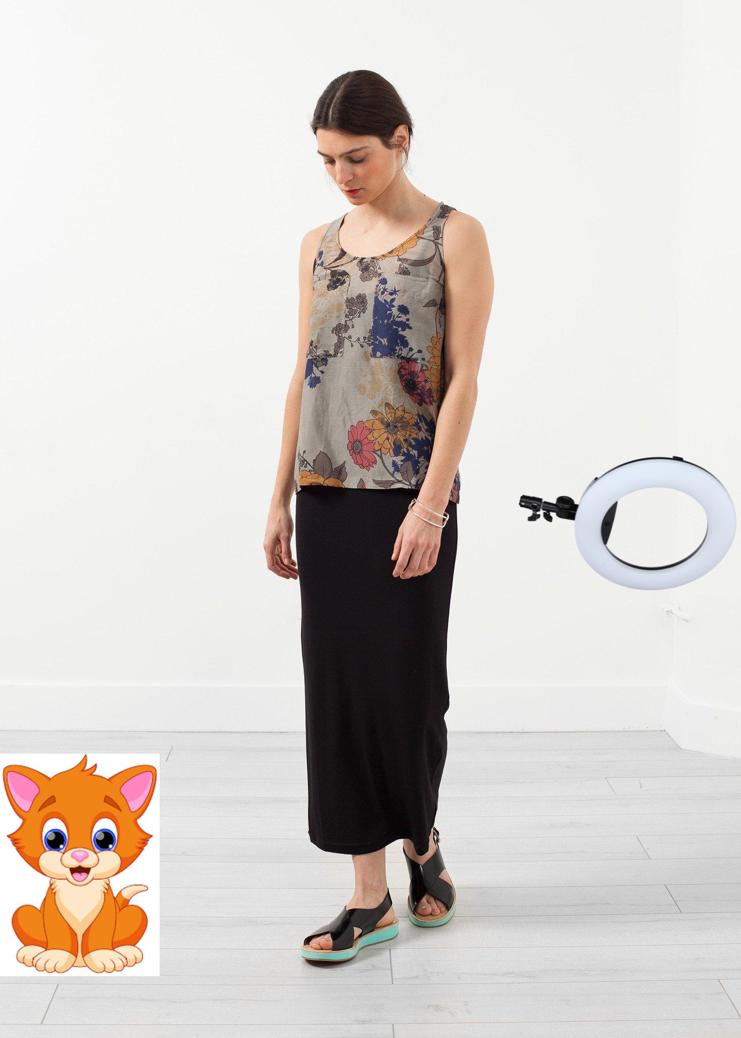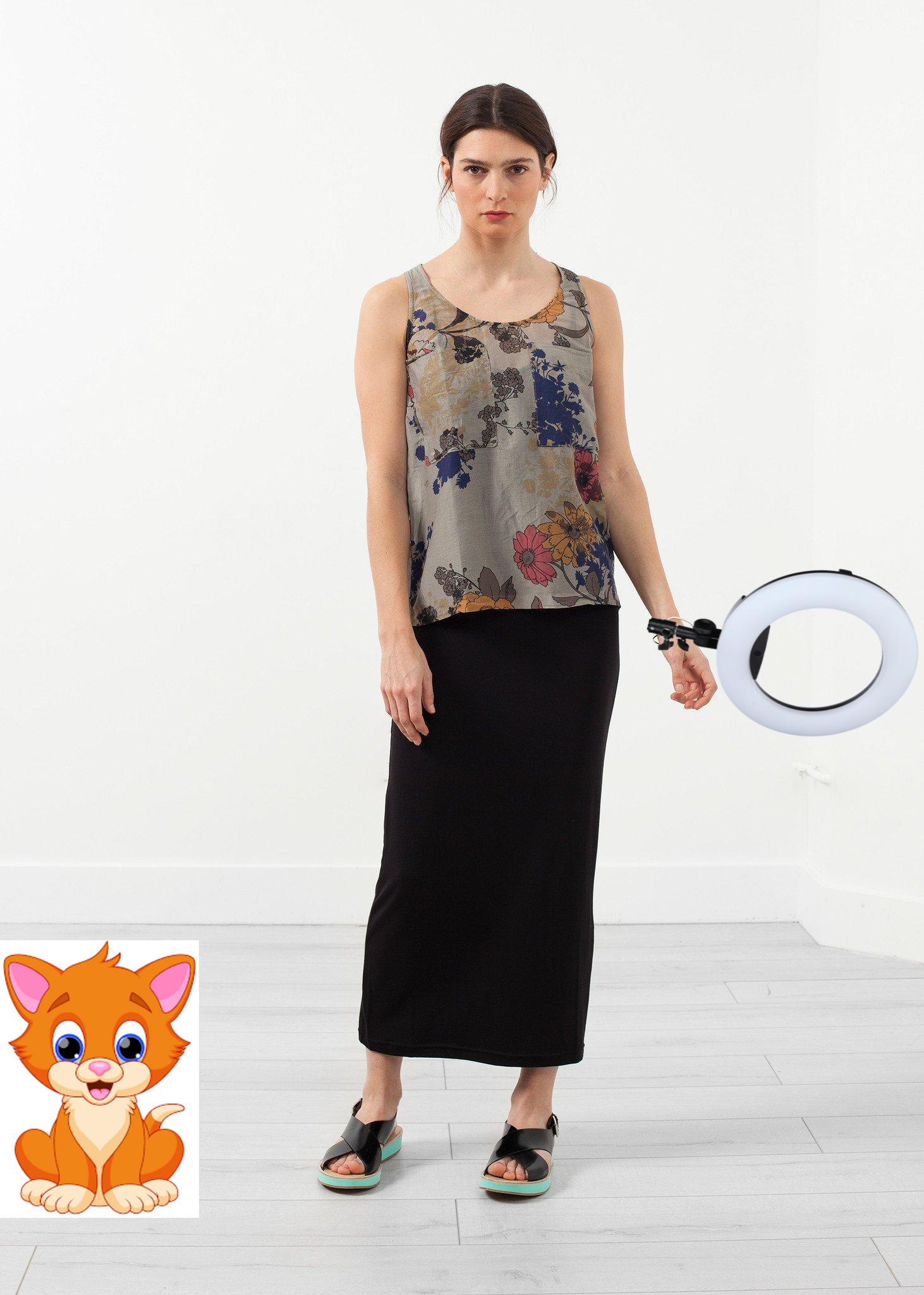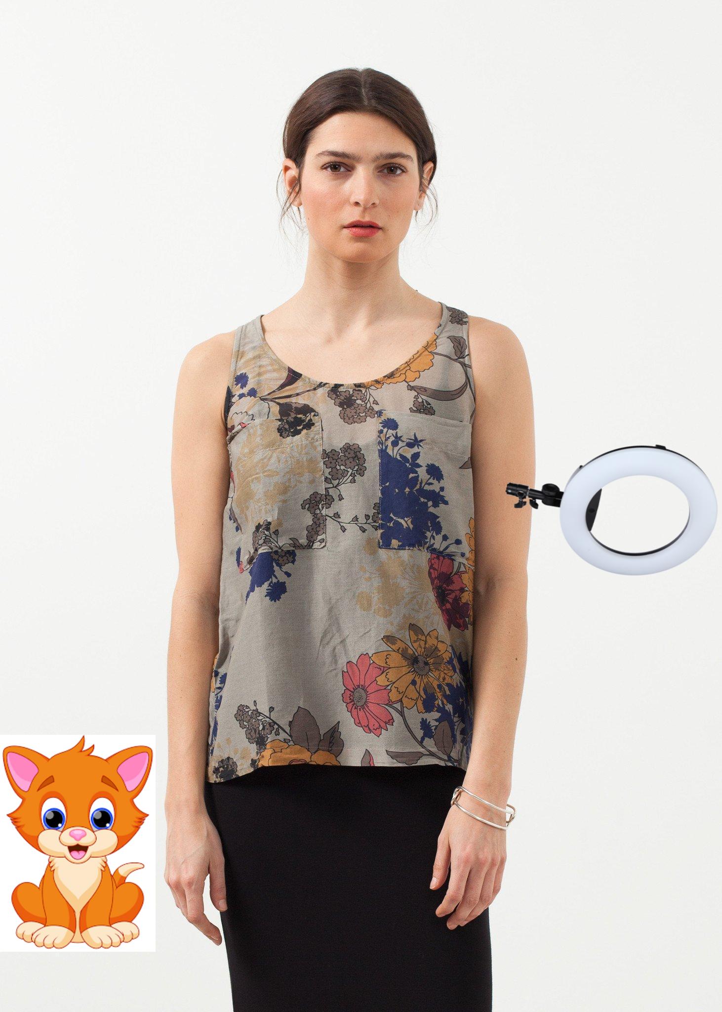 Eclectic floral print is in for spring, and we want it to stay. The Rulah Tank is an easy top for layers or as a statement. Double breasted pockets at front. Scooped neckline. Hannes Roether. Color Original. 70% Cotton, 30% Silk. Made in the EU. Lana is wearing an X-Small.