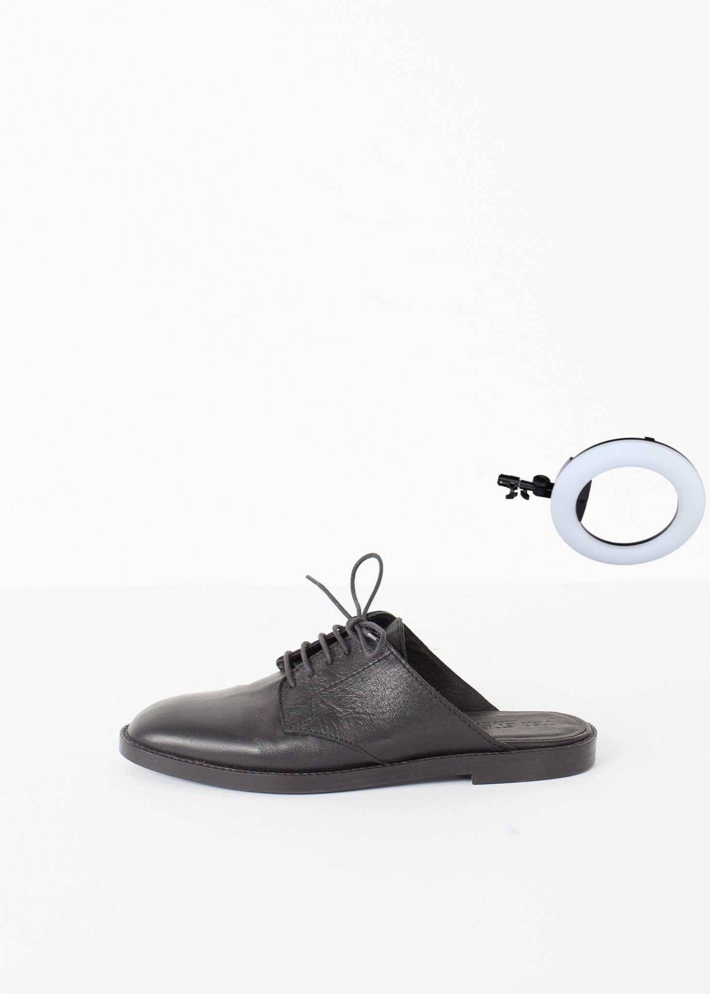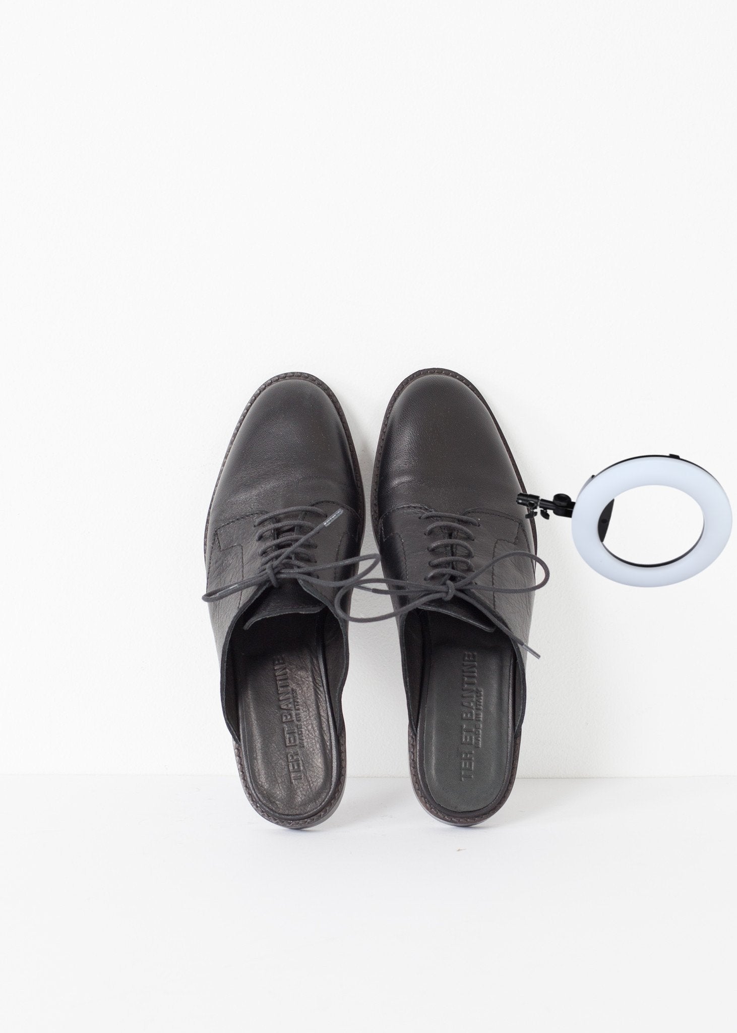 A classic oxford is given a superbly slouchy redo. With the back half removed, the slide from Ter et Bantine is at once totally easy and a complete classic. Color Black. 100% Leather.