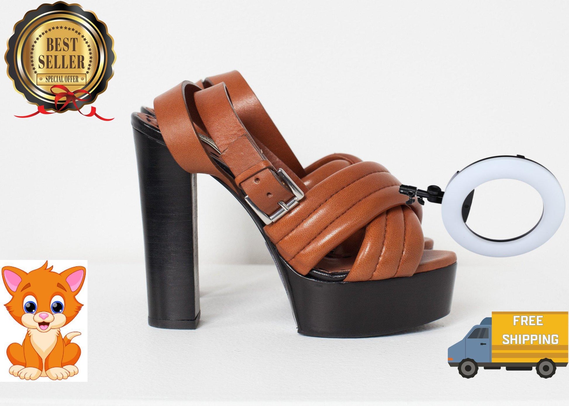 The Farlill Heel from By Malene Birger presents the reinvented platform heel. Gorgeous leather ankle straps with layering pieces demands uniqueness. Color Brown. Leather. Made in Portugal.