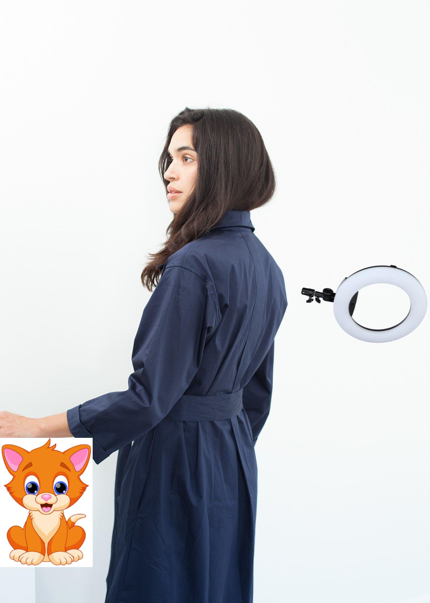 With wide notched lapels, a detachable sash belt, french seams and bound edges, fold-up cuffs and self-fabric buttons we would still call this gorgeous trench minimal. Jesse Kamm. Color Navy. 95% Cotton, 5% Lycra. Made in U.S.A. Ashley is wearing an Extra-Small.