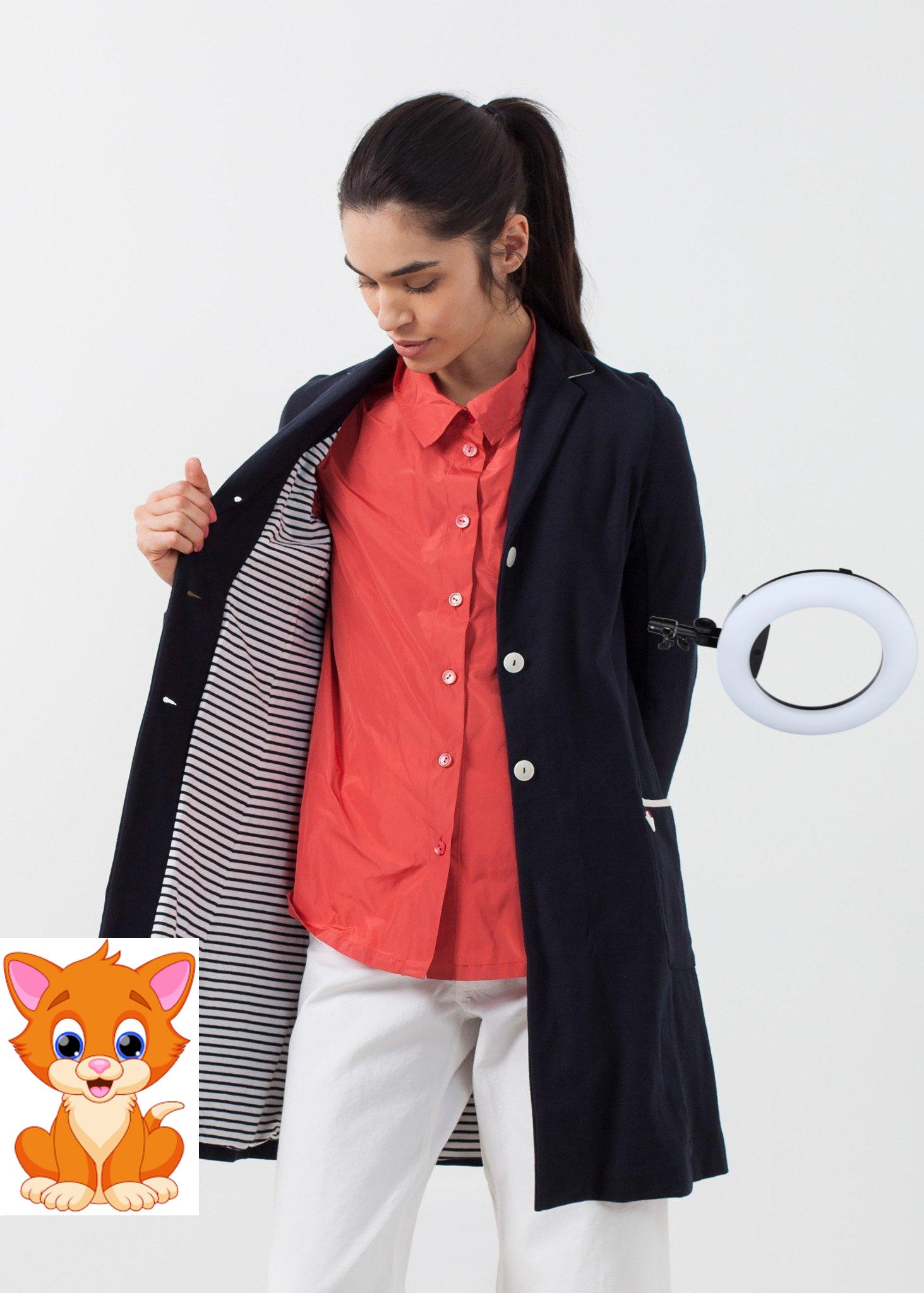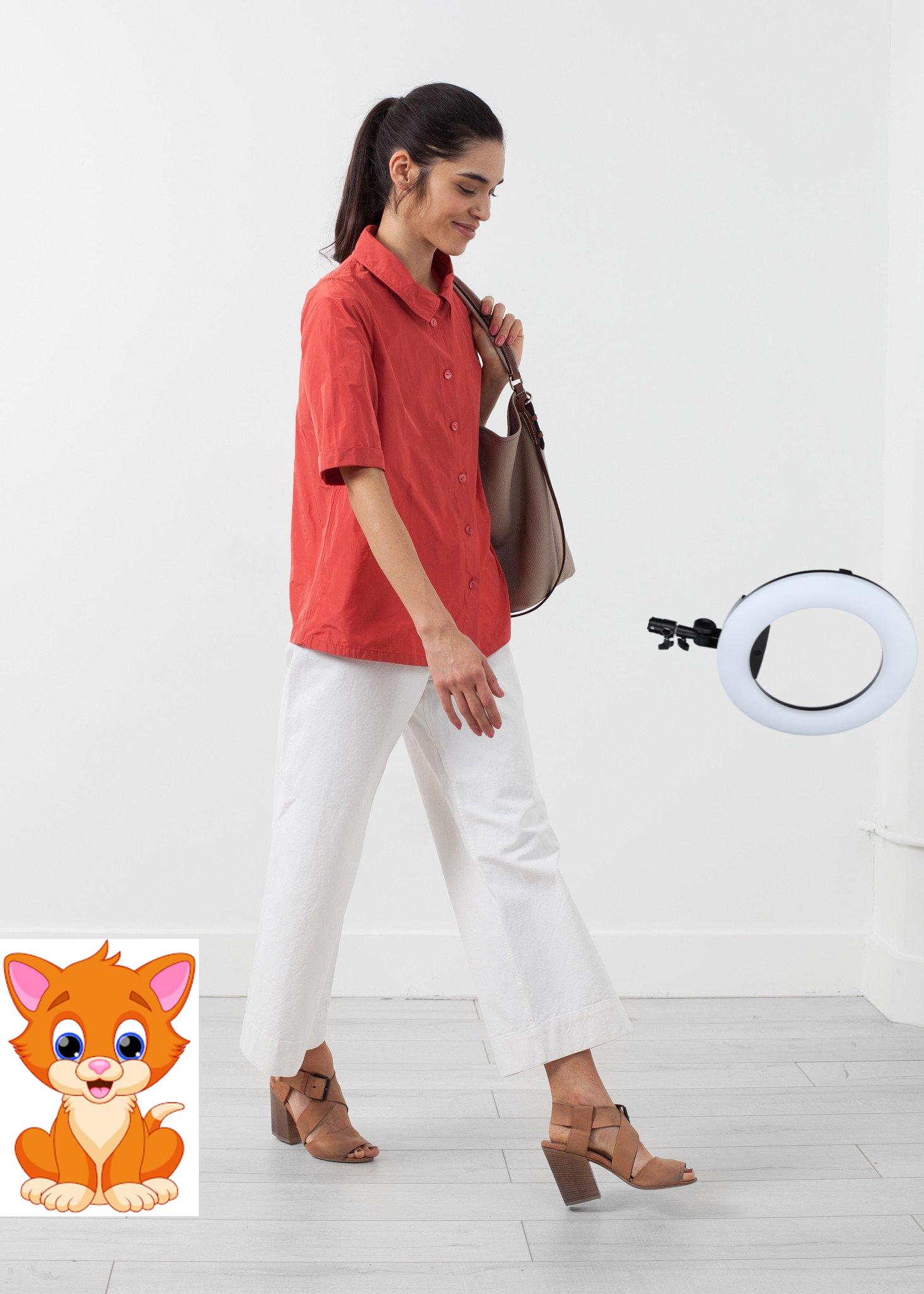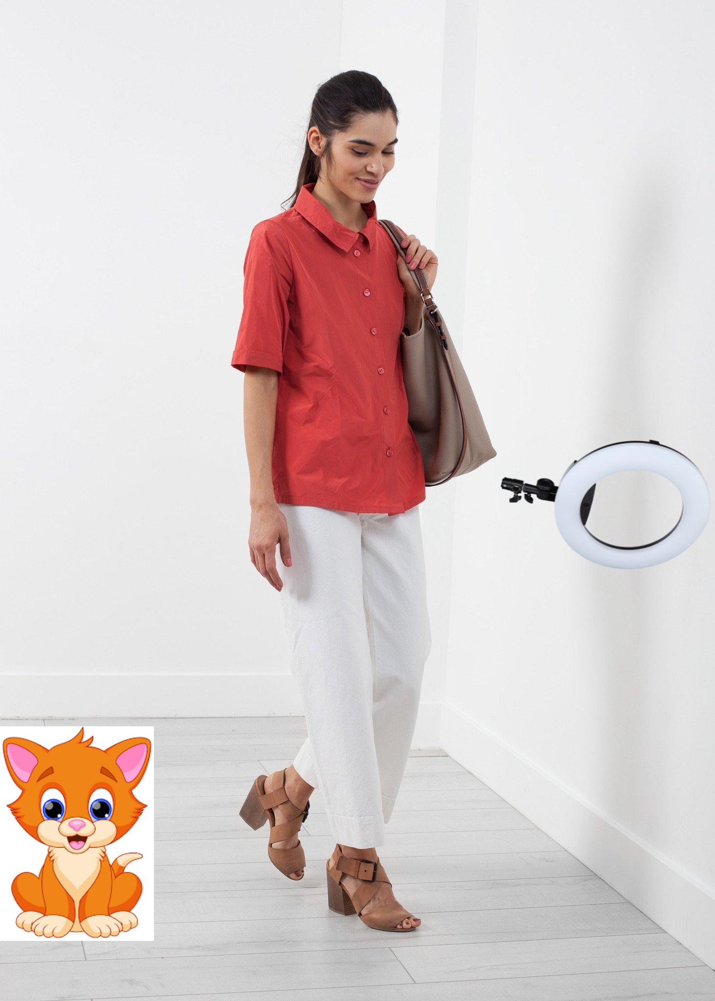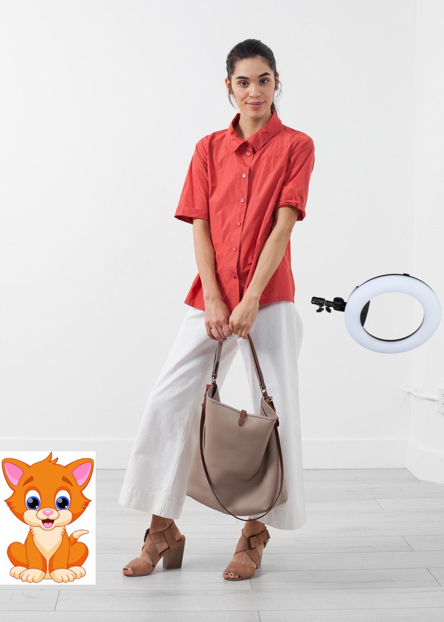 This reinterpretation of closet staples with water resistant features demonstrates Hovman's ability to offer functional classics for everyday wear. The Short Sleeve Button Up by Hovman presents newness in this season's curation. Trapeze silhouette. Front button placket. Color Coral. 100% Polyester. Ashley is wearing a German 34.