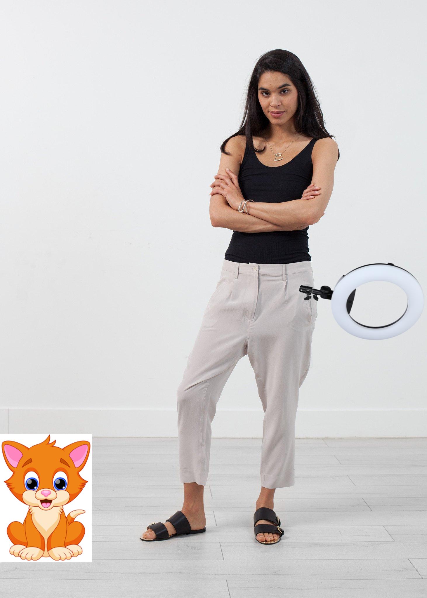 The Silk Pant is a slim pant with slight drop. Single button with zip fly closure at front. Side angled pockets with coin pocket at front, one exterior pocket at back. Sibel Saral. Color Stone. 100% Silk. Made in Turkey. Ashley is wearing a Small.
