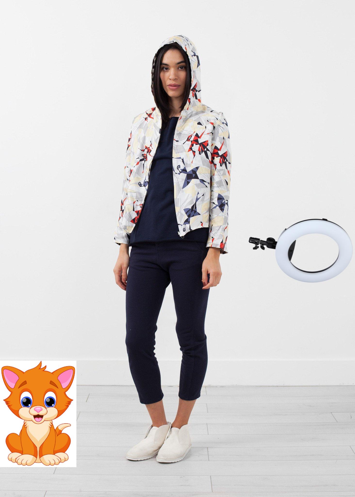 With a delectable selection of prints, the Hoodie suggests gorgeous chaos. Zip closure at front. Crew neckline. La Prestic Ouiston. Color Arlequins. 100% Silk. Made in Poland. Ashley is wearing a Size 1.