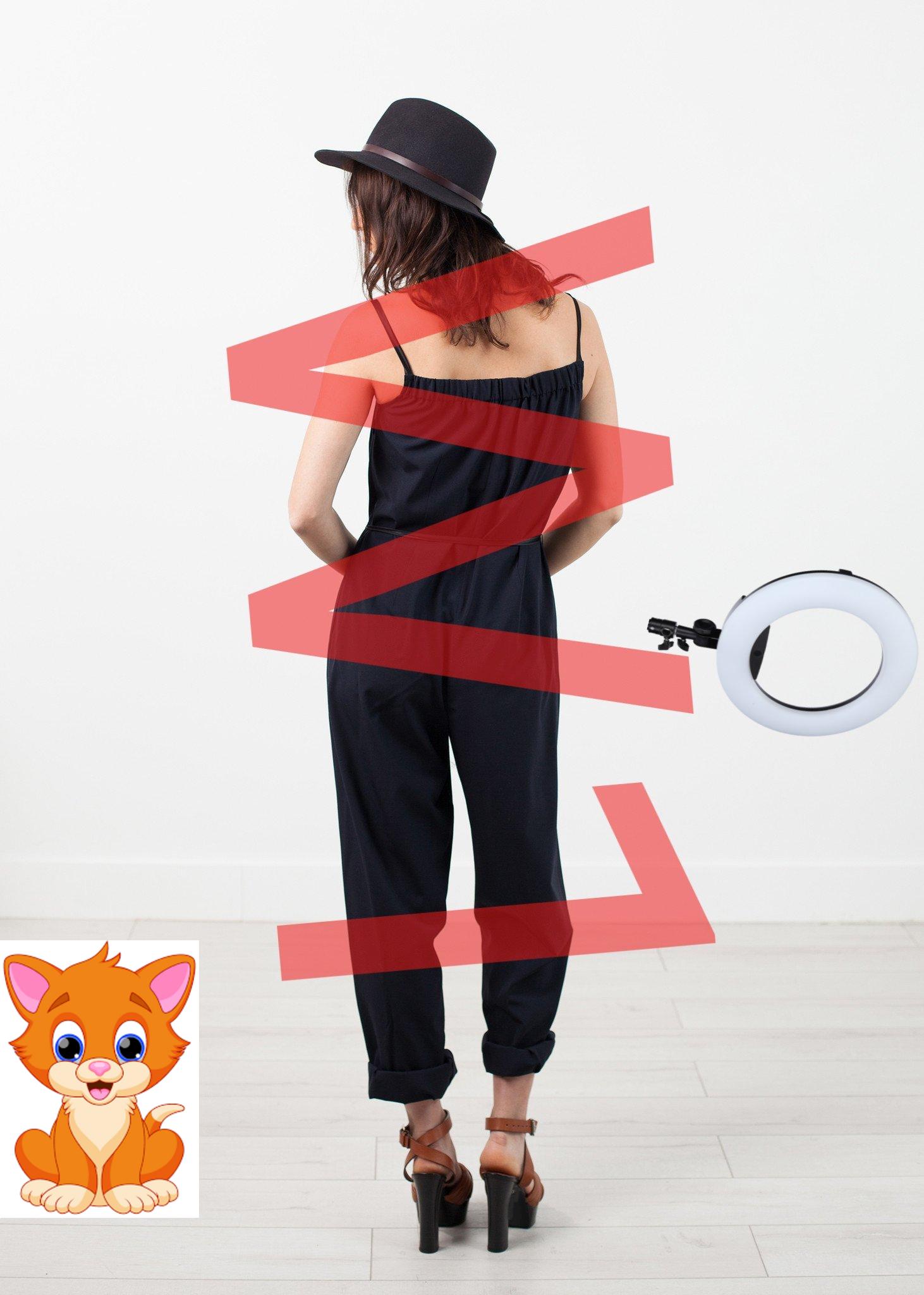 This playful, loose fitting jumpsuit is a fantastic functional piece. Elastic neckline for security between thin, over the shoulder straps. Adjustable waist tie. Side angled pockets. Gathered accents with paneling aids to the shape. Invisible zip closure at side. Harvey Faircloth. Color Navy. 100% Wool/Silk Blend. Pocket Lining, 100% Polyester. Made in U.S.A. Lana is wearing a size 2.