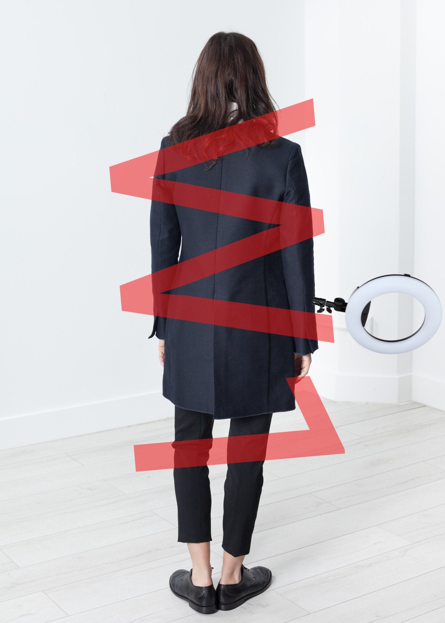 A sleek and sensible collarless coat from Ter et Bantine in a luxurious premium cotton twill that feels more like an easy denim. Raw edges at center front hide hand-sewn snaps. Center back vent and a small vent at each sleeve. Color Navy. 100% Cotton. Lana is wearing the Size 42.