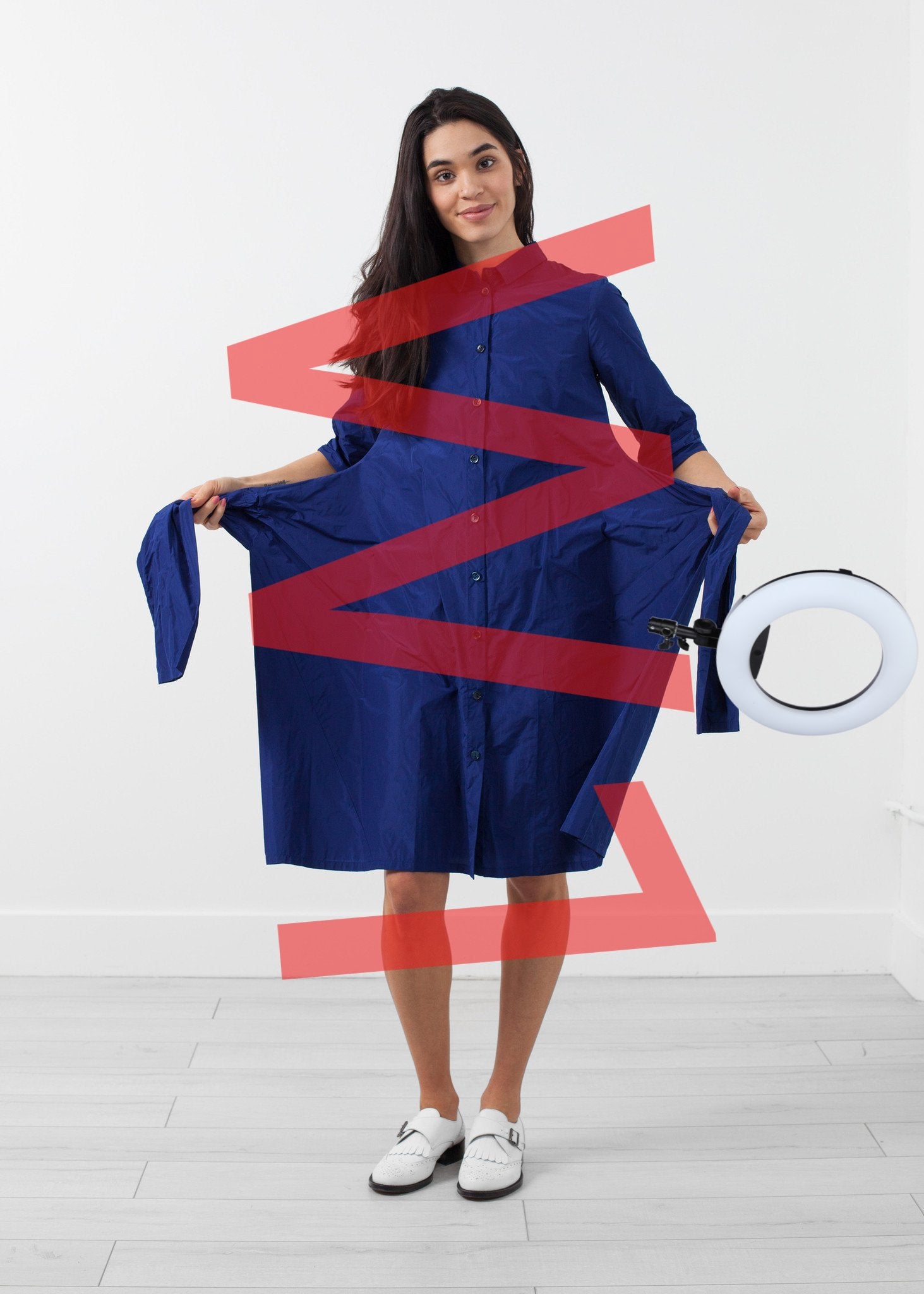 This reinterpretation of closet staples with water resistant features demonstrates Hovman's ability to offer functional classics for everyday wear. The Tied Sleeve Dress provides uniqueness in texture and silhouette. Button placket closure at front. 3/4 inch sleeves. Sleeve tie at waist. Color Royal Blue. 100% Polyester. Ashley is wearing a German 34.