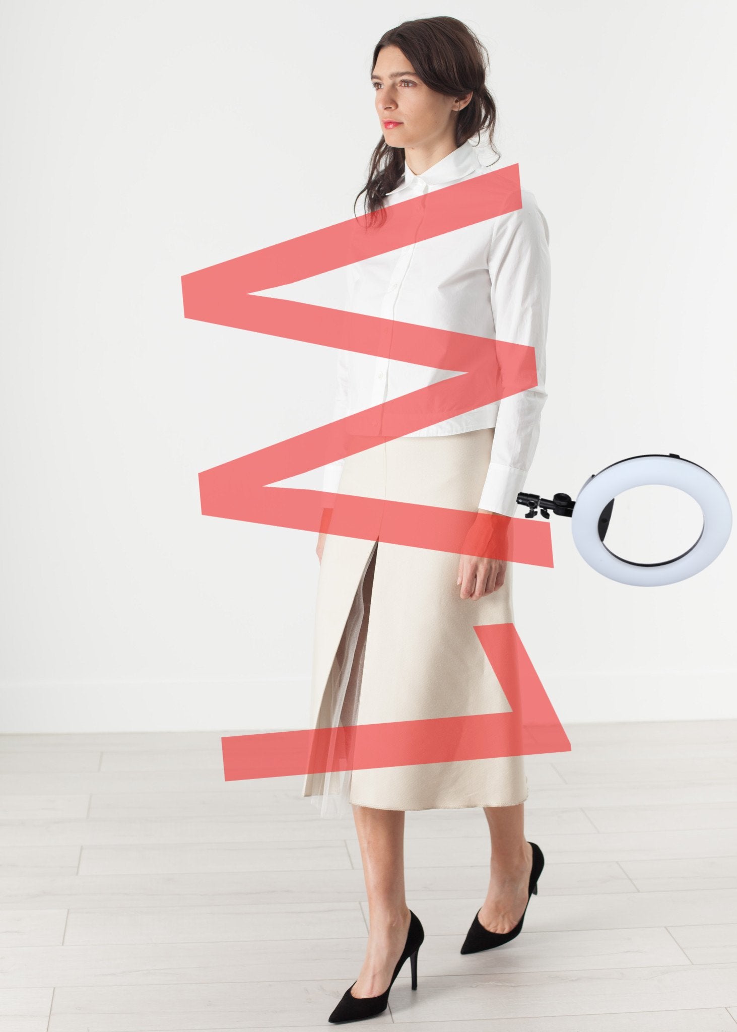 Timeless and inventive, Manuela Arcari’s designs for Ter et Bantine are exquisitely minimalistic while including touches of femininity. A-line skirt with subtle paneling. Back darts add to clean silhouette. Zip closure in back. Color Cream. 63% Cotton, 21% Polyester, 16% Seta. Made in Italy. Color Cream. Lana is wearing a Size 38.
