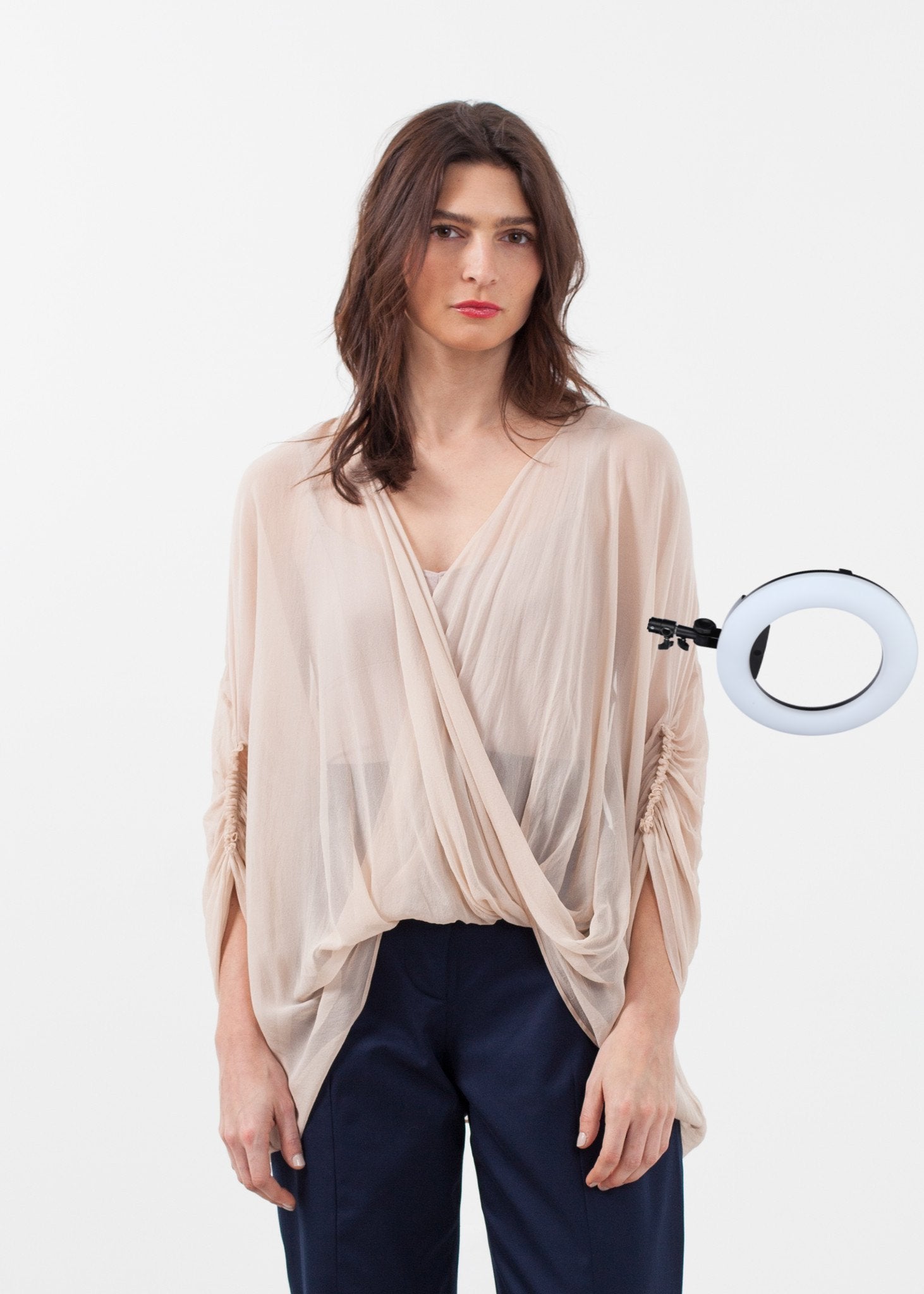 Louiza Babouryan offers a sweet cacophony of artistic vision for her Spring/Summer 2015 line. Dreamy pieces paired with flowing silhouettes invites to indulge on that delicious side. The Twist Top is the needed finish for a night out. Deep V-neckline. Delicate gathers on sleeves. Color Sand. 100% Silk. Made in U.S.A. Lana is wearing an X-Small.