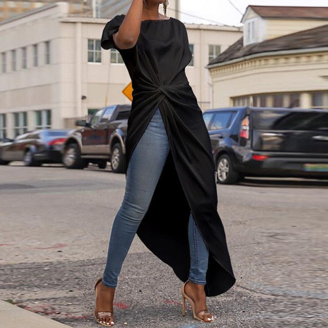 VONDA Women Asymmetrical Blouse Sexy Split Hem Striped Party Tops Long Ladies Office Shirts 2020 Women Tunic Plus Size Blusas