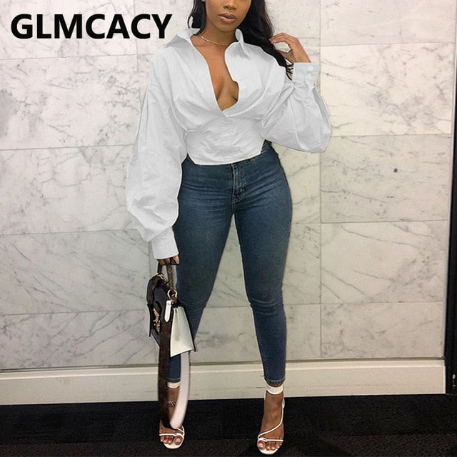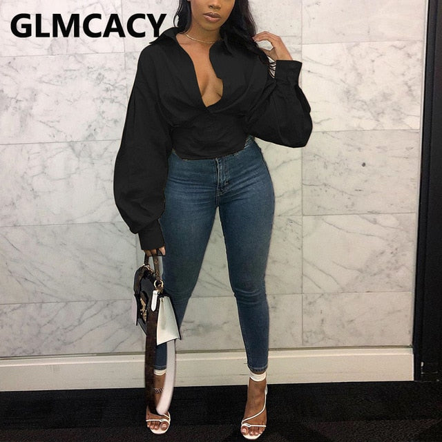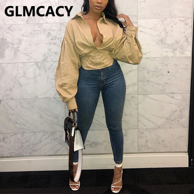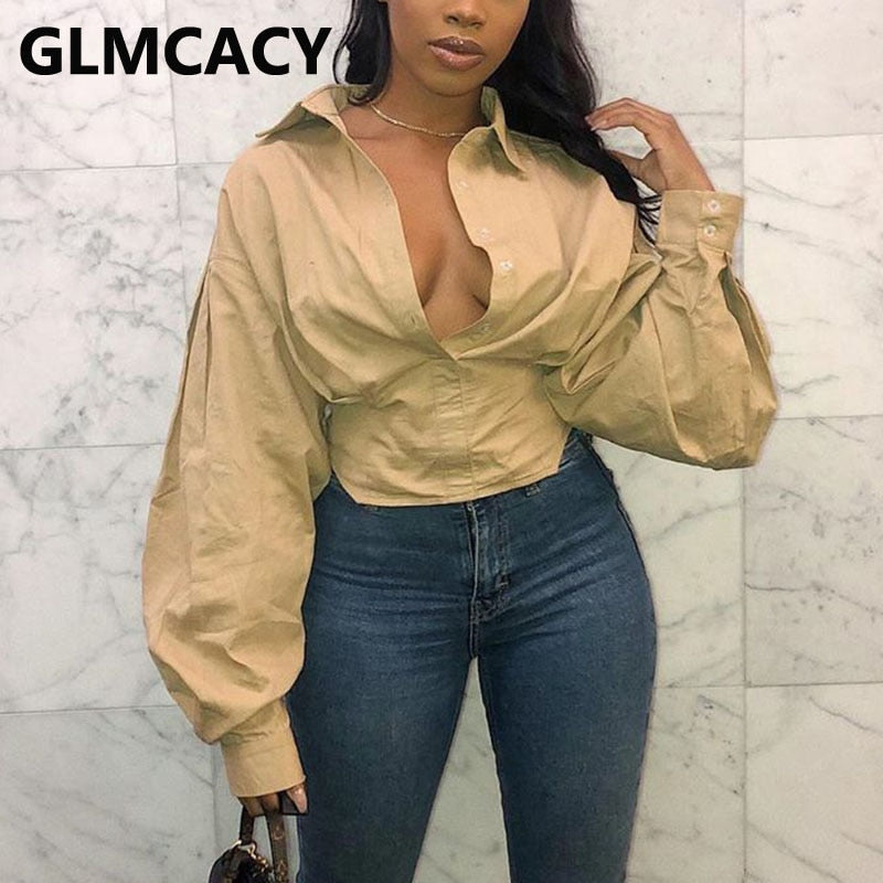 Women Long Lantern Sleeve Button Shirt Elegant Chic Tunic Blouse Tops
