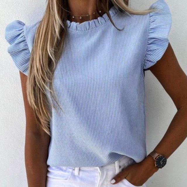 Women Pineapple Floral Print Ruffle Blouse 2020 Summer Butterfly Sleeve Shirt Elegant Office Lady O-Neck Tops Blusa Streetwear