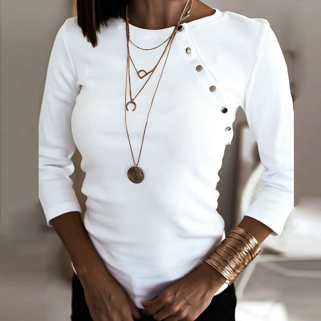 Women Sexy V-Neck Button Blouses Shirts Autumn 2020 Elegant Casual Long Sleeves Solid Tops 5XL Female Vintage Fashion Slim Blusa